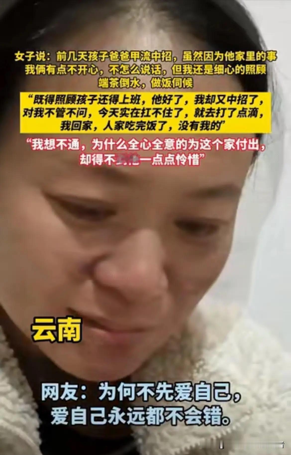 冷战里的甲流,浇灭了五年的婚姻。 在云南,有一对夫妻结婚五年,日子早没了刚在一起时的热乎劲儿,更多是柴米油盐的平淡,还有偶尔的拌嘴冷战。这天的冷战,起因特别小——丈夫下班忘了去幼儿园接孩子,等妻子匆匆忙忙赶过去,孩子已经孤零零站在门口抹眼泪。 妻子一肚子火气,回家就跟丈夫翻了脸,俩人谁也不搭理谁,家里的空气冷得像结了冰。可没等冷战分出个对错,丈夫就突然发起了高烧,浑身酸痛、咳嗽不止,去医院一查,是甲流。 看着丈夫蜷缩在床上哼哼唧唧的样子,妻子心里的委屈瞬间被心疼压了下去。她没再提接孩子的事,也没再计较冷战的对错,转身就扎进了忙碌里:白天顶着寒风跑药店买退烧药、止咳药,排队抢抗原,回家还要给丈夫物理降温、熬清淡的粥;晚上不敢睡沉,每隔一小时就起来摸一摸他的体温,孩子夜里哭闹,她也轻手轻脚哄睡,生怕吵到丈夫休息。那几天,她连轴转,眼里全是丈夫的病情,自己累得眼圈发黑,也没说一句抱怨的话。 原以为,她的悉心照料,丈夫总能看在眼里、记在心里。可没等丈夫完全好利索,妻子就扛不住了——连日的操劳加上被传染,她也病倒了,高烧到浑身无力,连起床倒水的力气都没有,只能躺在床上昏昏沉沉地挨着。 可丈夫的表现,却让她从头凉到脚。 他明明已经能正常活动,却整天窝在沙发上刷视频,手机声音开得老大,完全不管床上难受的妻子。妻子口干舌燥,轻声让他递杯水,他头也不抬地敷衍“自己起得来”;到了饭点,他直接点了自己爱吃的外卖,当着妻子的面大快朵颐,连问一句“你想吃点什么”都没有;孩子被家里的沉闷气氛影响,时不时哭闹两声,他不仅不哄,还不耐烦地吼孩子,甚至抱怨妻子“连个孩子都看不好,还添乱”。 妻子躺在床上,意识模糊间,全是前几天守着丈夫的夜晚:她一遍遍用温水给丈夫擦额头,喂他吃药时小心翼翼吹凉,怕他夜里出汗,每隔一会儿就给他换一次枕巾……那些掏心掏肺的付出,此刻看起来像个笑话。 有好心的邻居看出家里的情况,端来一碗热乎粥给妻子,叮嘱她趁热喝,补补身子。可丈夫却皱着眉扫了一眼乱糟糟的客厅——那是妻子病倒后没人收拾留下的狼藉,他没想着帮忙整理,反倒当着邻居的面,阴阳怪气地冲妻子说:“你看你,这不还能起身接粥吗?也不说起来把屋子收拾收拾,乱糟糟的像什么样子。” 邻居尴尬地笑了笑,放下粥就走了。屋子里又恢复了寂静,只剩下丈夫刷视频的声音,还有妻子压抑的呼吸声。那一刻,妻子心里最后一点温度也被浇灭了,比身上的高烧更难受的,是心底的寒意。她终于看清,这场五年的婚姻,从来都不是双向奔赴,只有她一个人在拼命付出、拼命维系,而丈夫,早已习惯了她的妥协和迁就,连最基本的体谅和回报都做不到。 等妻子慢慢病愈,她再也没主动跟丈夫说过一句话。俩人同住一个屋檐下,却像陌生人一样:他吃他的,她做她的,孩子由她独自照顾,家里的沉默比之前的冷战更让人窒息。 她终于明白,爱情和婚姻从来都不是一个人的独角戏。单方面的付出,就像往冰冷的水里添柴,再怎么努力,也捂不热一张双人被;没有回应的爱,就像寒冬里的一缕微光,终究抵不过漫天风雪,最后只剩下满屋子的寒意,和一段走到尽头的婚姻。