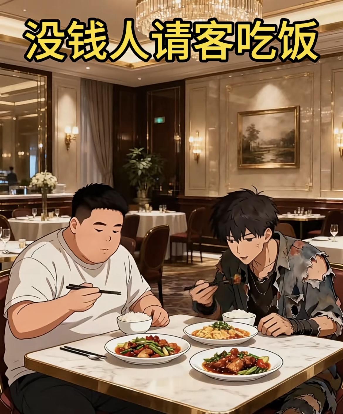 1. 有钱人的请客:抛开排场与形式,回归社交的本质,更看重相处的实在与舒适,无需靠高档场所撑面子,体现的是“里子”的底气。 2. 没钱人的请客:被“面子文化”裹挟,宁愿超出自身经济能力选择高档环境,用外在的排场来维系礼数和自尊,折射出对“面子”的执念。 3. 深层还反映出:经济优势者能摆脱形式束缚,而弱势方往往需要通过物质排场来弥补心理上的底气不足。