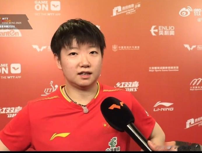 孙颖莎4-0王艺迪晋级八强!没想到赛后莎莎却这样评价自己! 记者:首先恭喜你4:0拿下这场比赛,现在怎么总结这场胜利? 孙颖莎:“我觉得首先确实4:0的比分,自己赛前也没有想到。在今天晚上这场比赛里,我首先心态调整得很好,整体打得也比较松弛。毕竟到了今年年底最后一个国际比赛,现在精力、体力可能都会有所下降,但这其实很正常,每一位运动员都面临这样的问题。而且我觉得,只要站上赛场,就还是希望自己能全力以赴地调动状态,打好每一分。” 记者:那怎么看明天跟长崎的比赛? 孙颖莎:“跟长崎确实交手过,但已经很久没打了。我觉得她在左手选手中还是有自己特点的,比如她的发球和反手。虽然我们交手次数不算多,但平时偶尔看她比赛,能感觉到她的打法有不少值得注意的地方。不过我觉得核心还是以自我准备为主,比赛中肯定会遇到很多困难,希望自己能冷静处理好每一分。” 记者:怎么看今天的混双比赛? 孙颖莎:“我觉得今天的混双比赛,因为搭档之间确实很熟悉,我和大头(王楚钦)现在不管是交流还是默契,可能都不需要太多语言沟通。一上场,两个人就能很快进入同频的状态,毕竟我们已经配合8年了,还经历了巴黎奥运会的洗礼,现在彼此的默契确实提升了一个层次。比如,我每一拍出手,他知道我会拉什么线路;他每一拍出手,我也清楚他大概的回球线路。但我也知道,比赛中还是会遇到很多困难和不确定因素,所以希望我们俩接下来能踏实准备,打好每一分。”