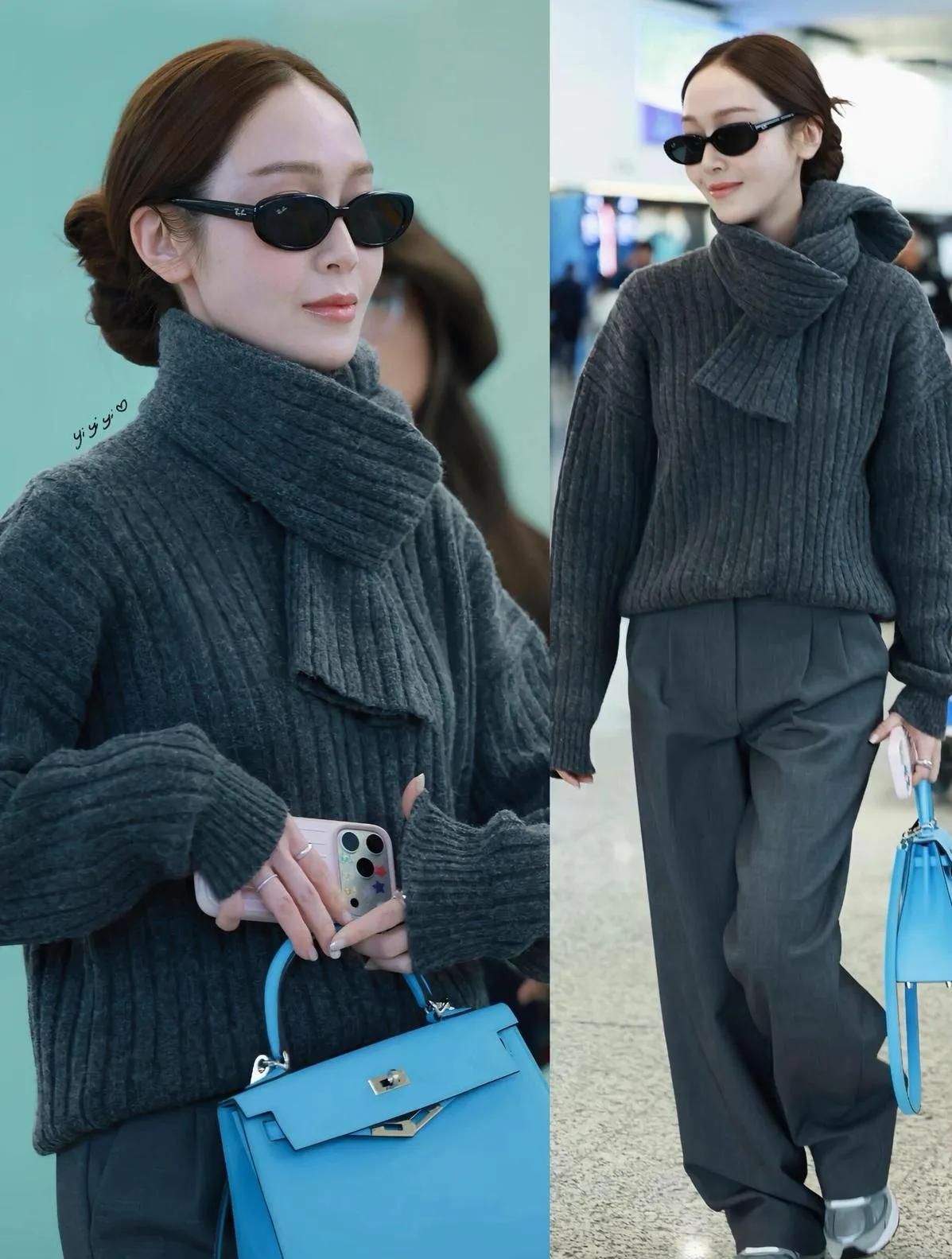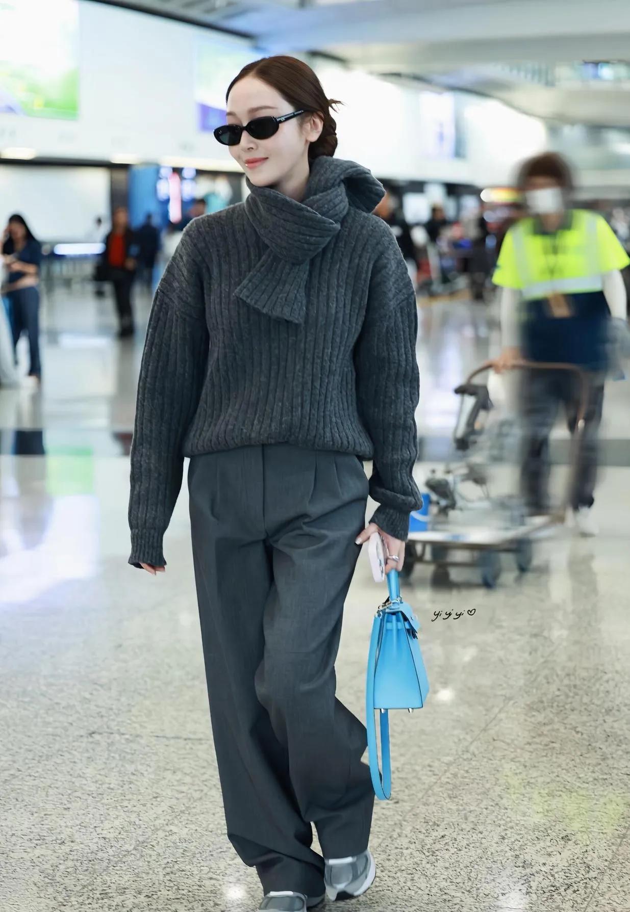 郑秀妍这组机场老钱风,把贵气穿成了呼吸感 卡姐新机场街拍直接杀疯了!灰调针织+垂感西裤的同色系组合,松弛又显贵,裹满脖颈的围巾自带慵懒滤镜,再配一只亮蓝色包包当点睛笔—— 不堆logo、只拼质感,把“低调贵气”四个字焊在身上,连墨镜都透着漫不经心的优雅,这才是老钱风的正确打开方式吧!