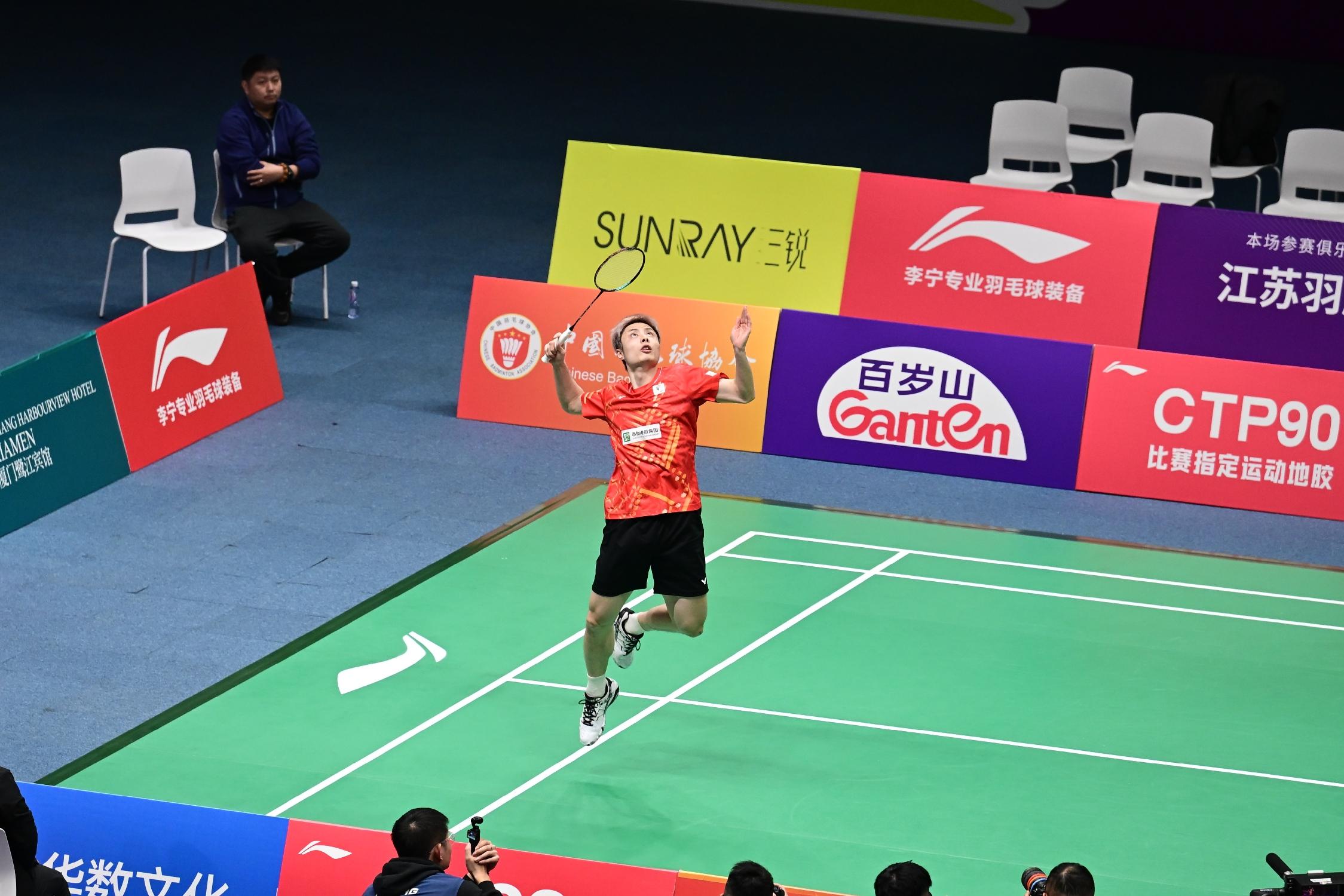 第二盘男单比赛,石宇奇2-0(15-13、15-13)战胜肖高博,江苏羽超2-0领先。