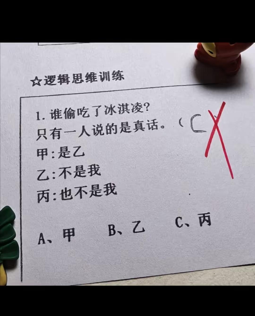 这一题确实不选C,丙说的是假话[捂脸]