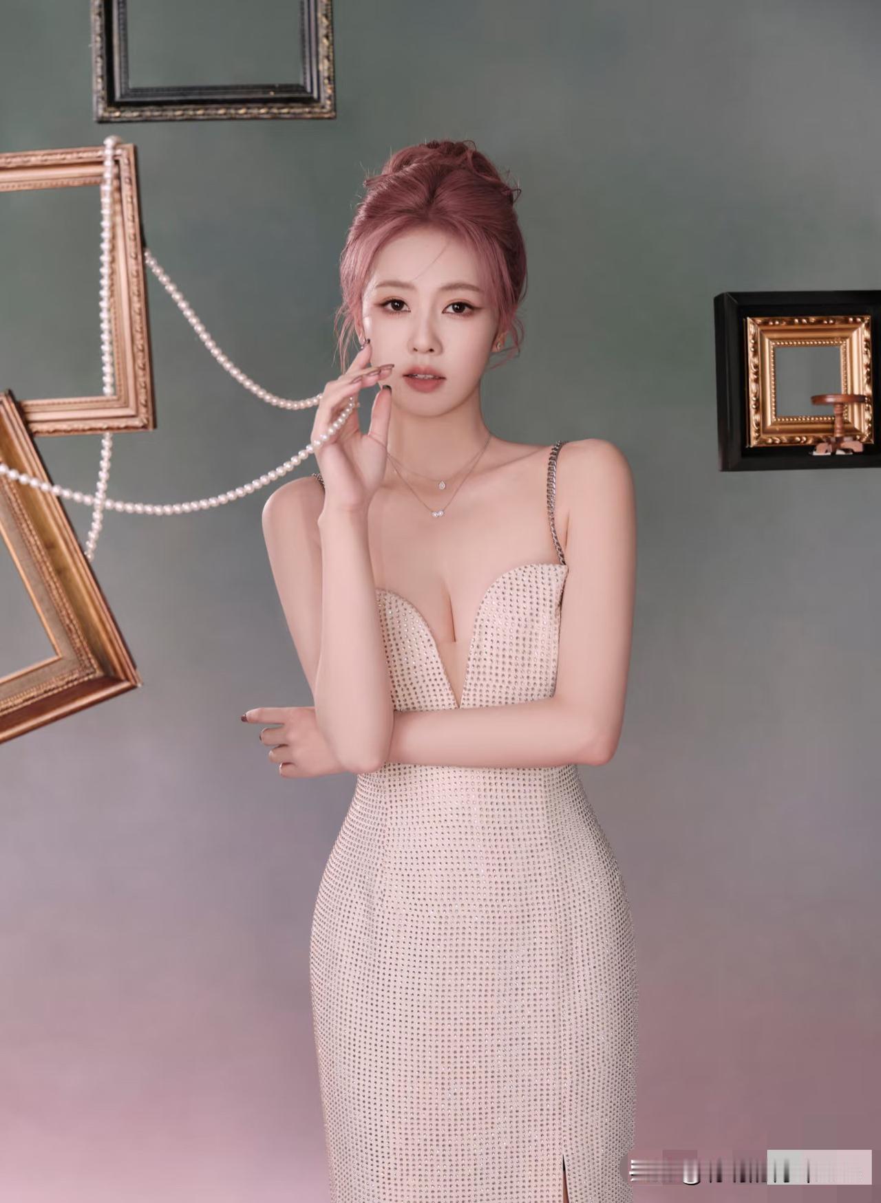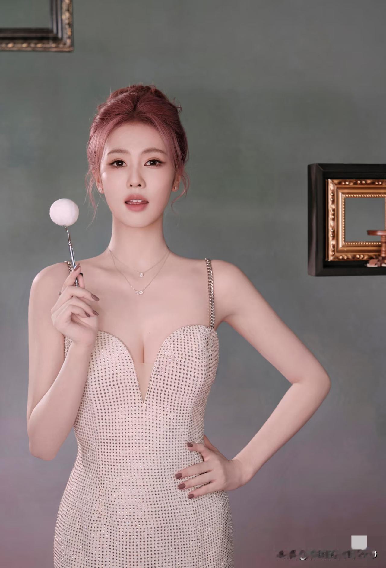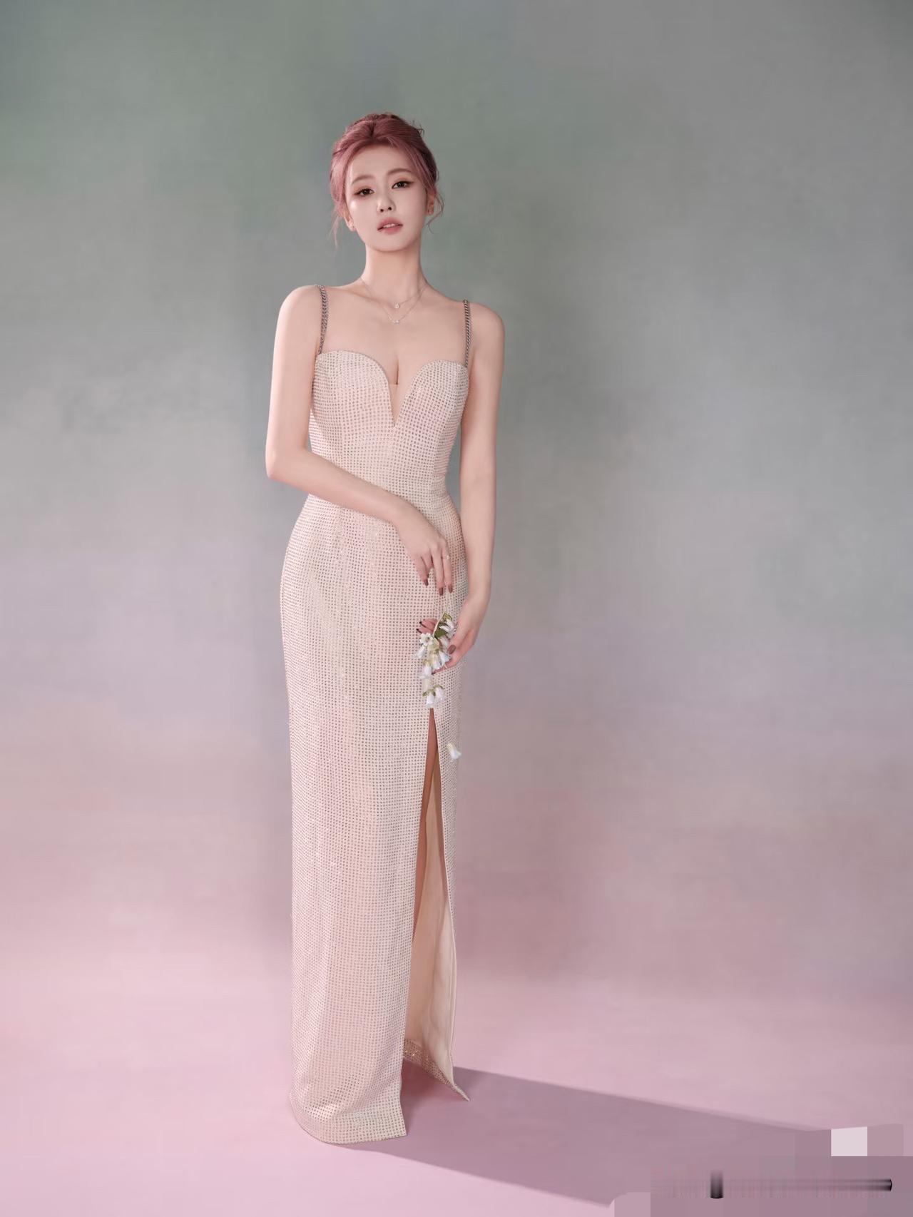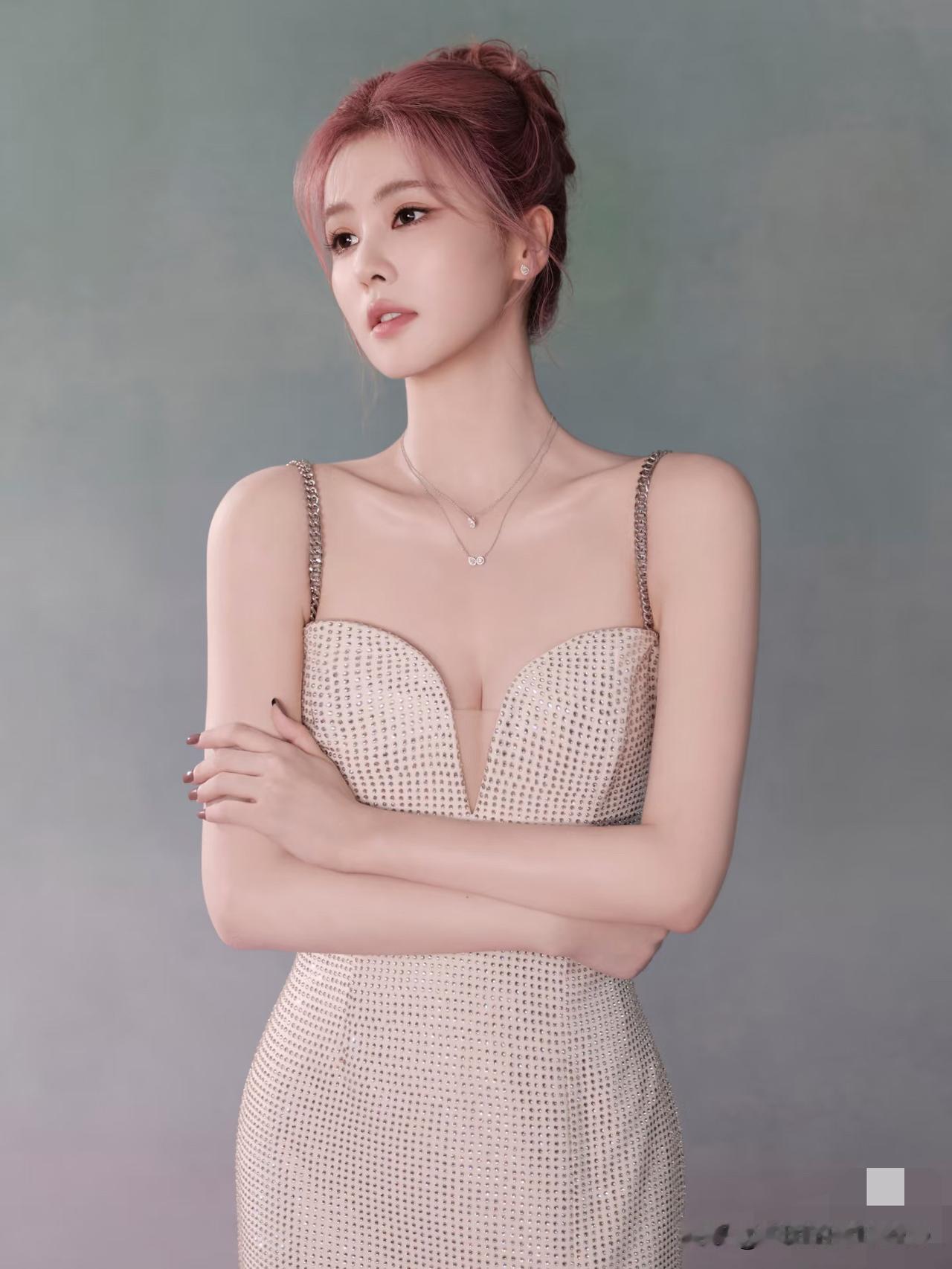 白鹿活动定妆照,一袭钻饰长裙搭配粉色头发尽显温柔优雅气质