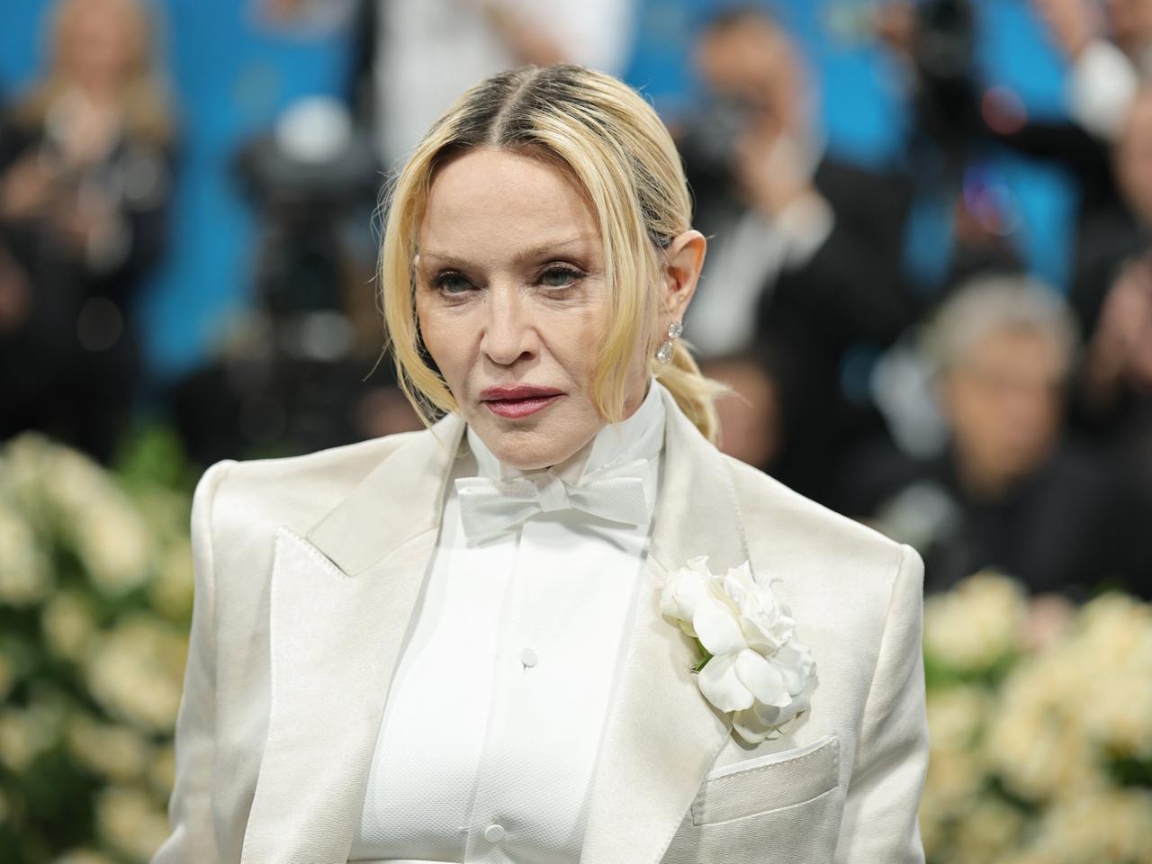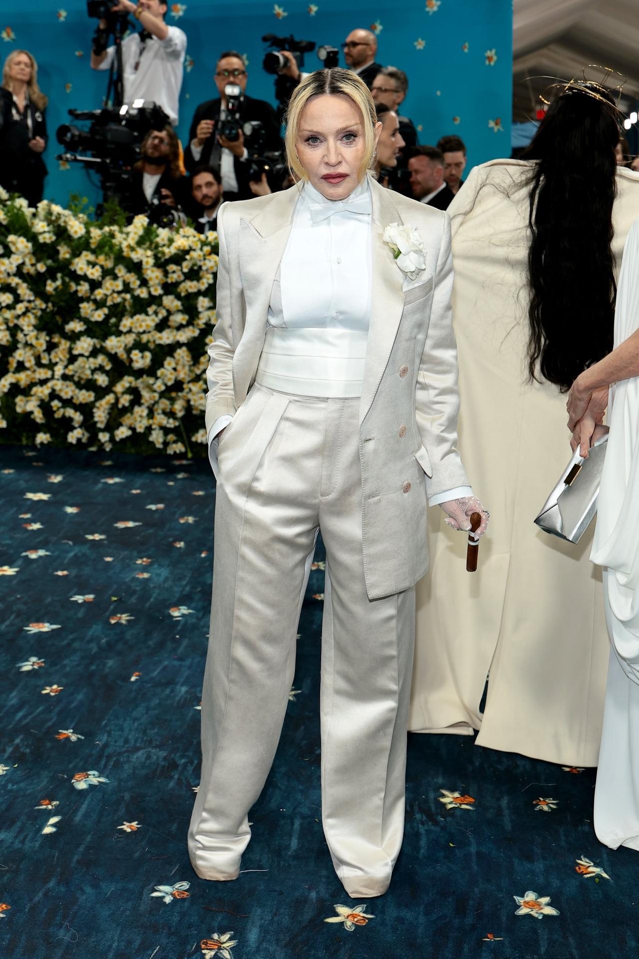 67岁的麦当娜(Madonna)身着一袭白色高定西装礼服惊艳亮相,发根已然泛黑,却毫不掩饰自然生长的痕迹。这股“松弛感”堪称一绝:她没有补染发根,没有刻意拉平皱纹,脸部线条自然下垂,却依旧气场十足。 麦当娜用一场红毯向世人宣告:松弛并非认输,而是赢到极致后的潇洒。67岁还能如此肆意,谁敢言老? 为何麦当娜走红毯没有清场待遇,身后人山人海?不愧是不补染的松弛女王。