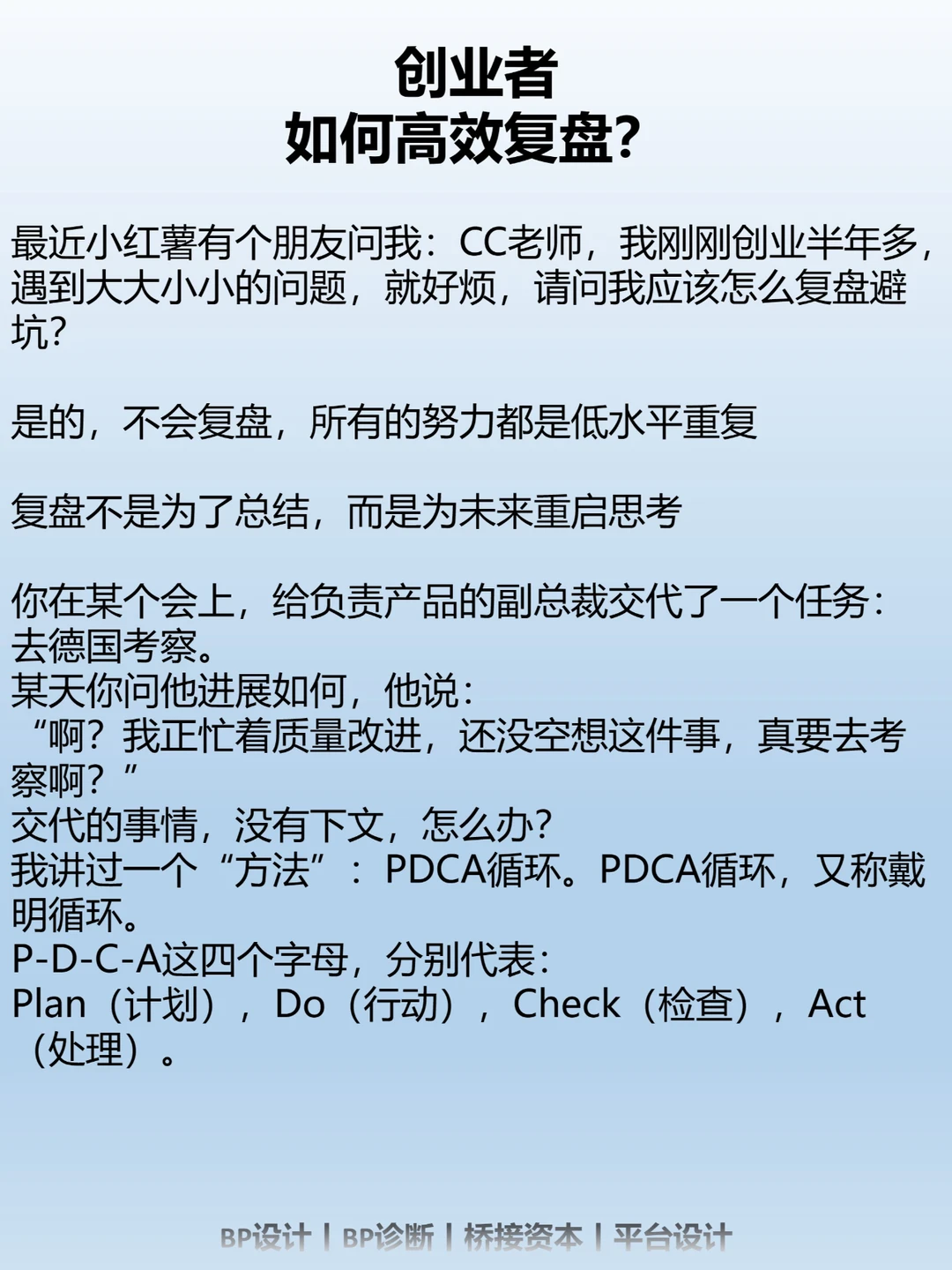 最近小红薯有个朋友问我:CC老师,我刚刚创业半年多 遇到大大小小的问题,就好烦 请问我应该怎么复盘避坑? —— 是的,不会复盘,所有的努力都是低水平重复 复盘不是为了总结,而是为未来重启思考