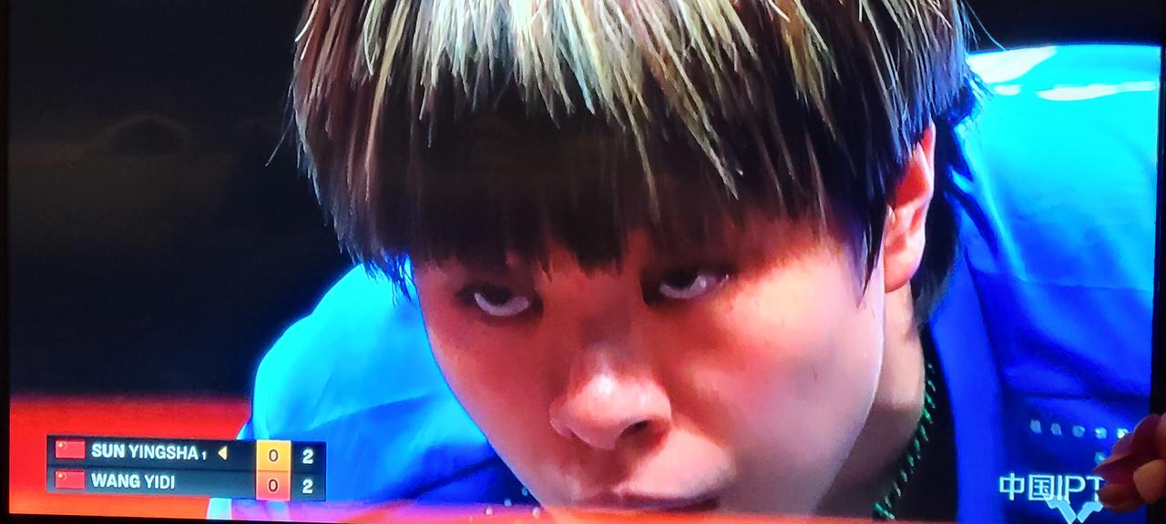 500个心眼的莎莎4:0战胜800斤力气的大迪,晋级四强! 莎莎进入状态非常快,很快以11:3光速拿下首局。第二局大迪状态回升,不像首局,将比分咬得比较紧,无奈关键球莎莎处理得很好,11:9再下一城。第三局大迪对付莎莎的办法不多,莎莎正手还打出了一个非常漂亮的“暴力莎”,11:7拿下第三局。第四局大迪尝试变化,但为时已晚,被莎莎压着打,最后11:7莎莎赢了第四局,从而4:0轻松战胜队友大迪,展现了世一强大的实力。 和我一起观赛的朋友感叹道,大迪很悲摧,成都混团只上了一场,香港总决赛首轮又“倒霉”地遇到世一莎莎,空有800斤的气力无法使出来啊。