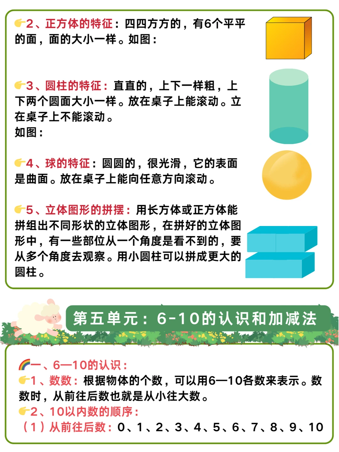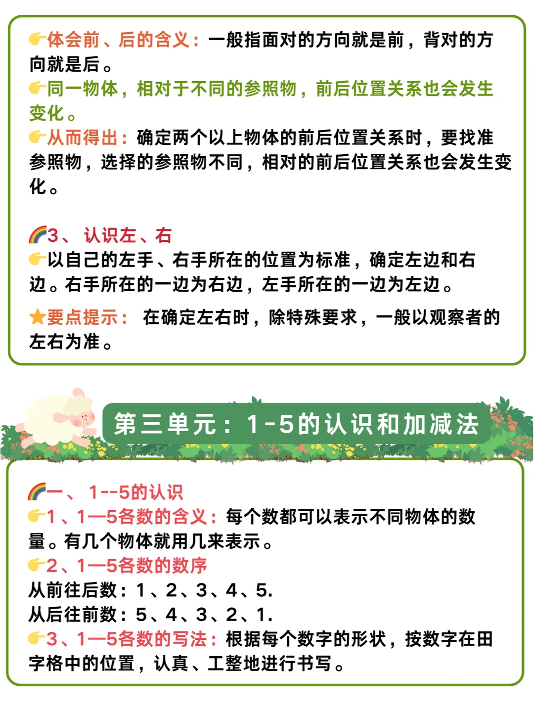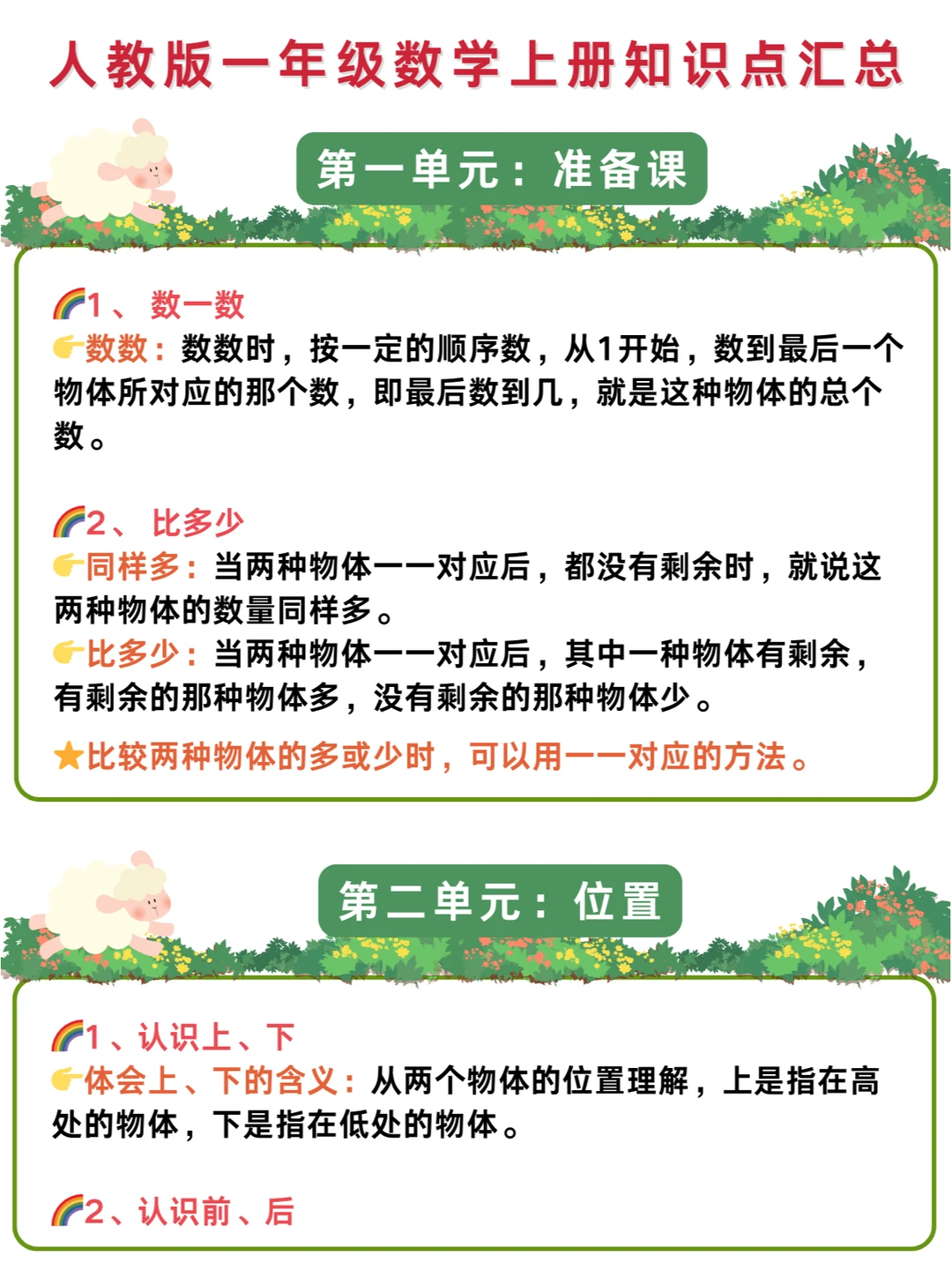 🌈幼儿园升小学一年级暑假衔接:数学详细学习计划+人教版一年级上册知识点汇总✅