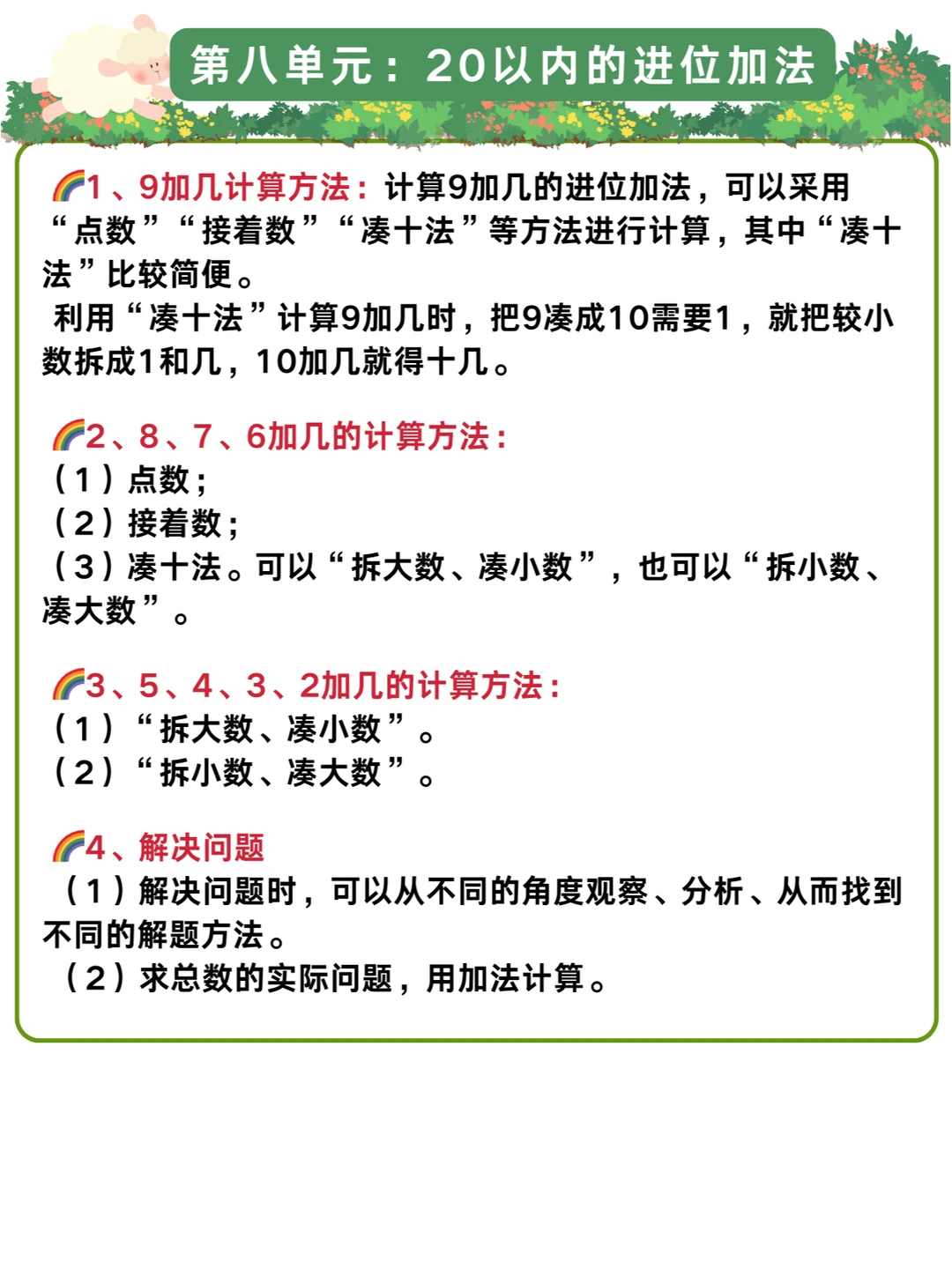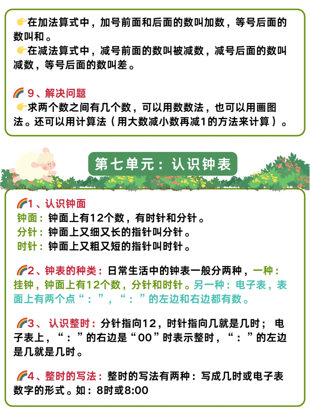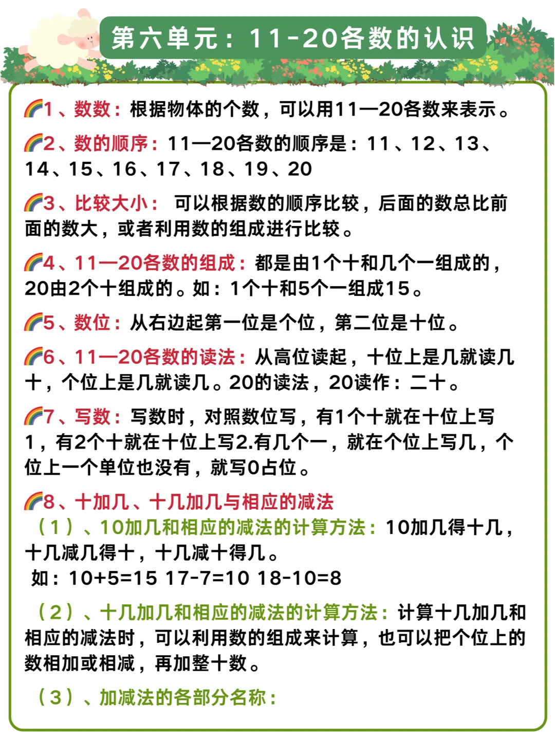 🌈幼儿园升小学一年级暑假衔接:数学详细学习计划+人教版一年级上册知识点汇总✅