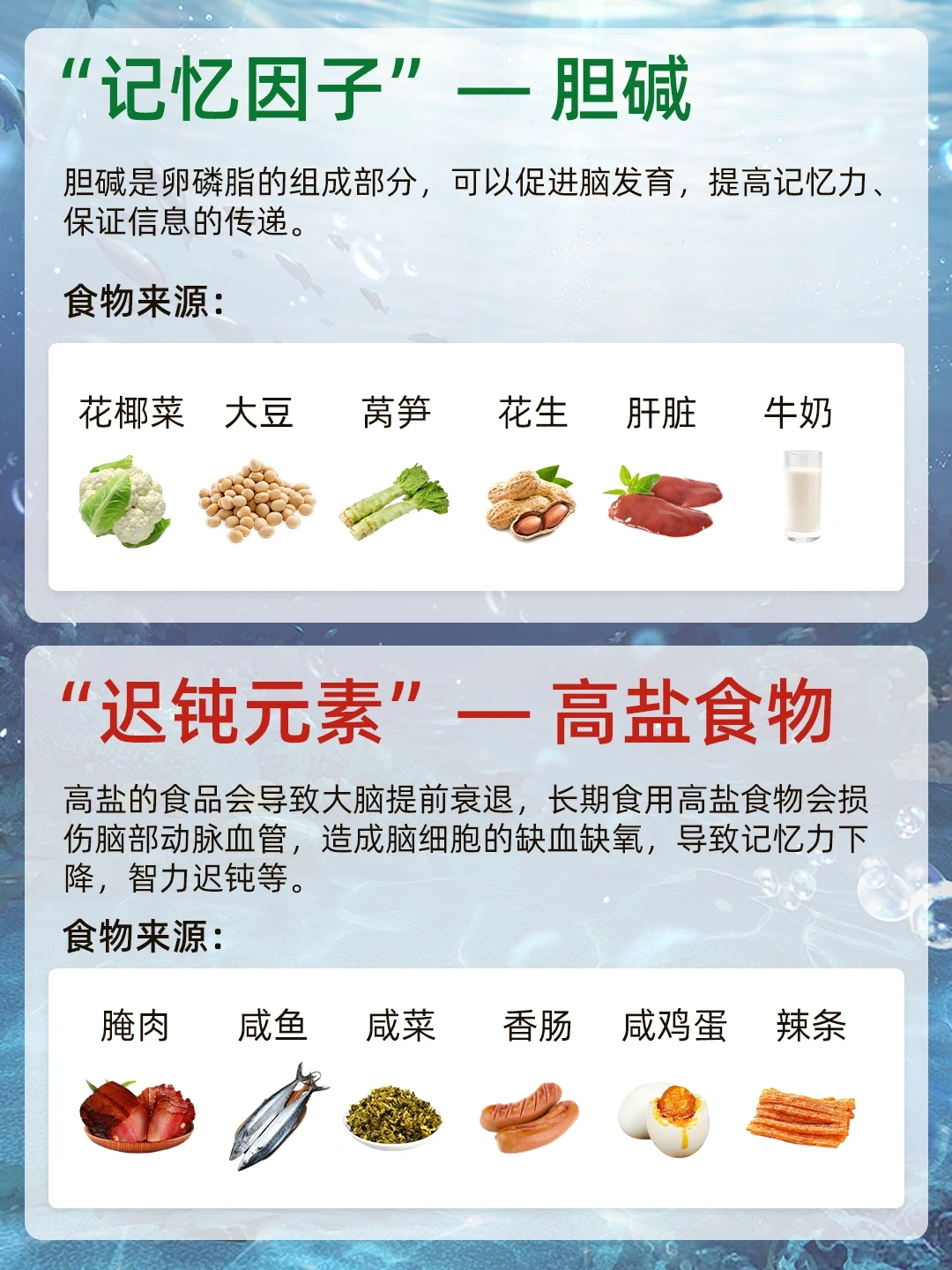 📝我们人脑的记忆功能是能与食物成分有直接关联的,例如食物中的卵磷脂,能够给脑组织产生乙酰胆碱,而胆碱在记忆和认知功能上有着关键性的作用。
