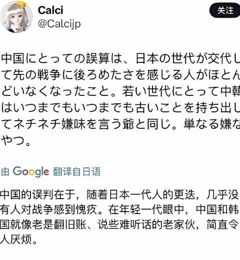 告诉你一个真实的日本!   最近刷到日本网友的言论真挺让人感慨:他们说中国误判了日本,年轻一代几乎没人对侵略战争愧疚,还觉得中韩翻旧账厌烦。   这话虽不是全体日本青年的心声,但确实戳中了一个关键问题 —— 日本年轻群体的历史认知偏差。   日本民调显示,四成年轻人不知道 8 月 15 日是战败日,七成从没和人聊过二战历史。   这种历史淡漠让右翼思潮有机可乘,像高市早苗这类鼓吹战争言论的政客支持率还不低。   这意味着日本再军事化的社会阻力在变小,而他们一边搞军事扩张,一边炒作 “台湾有事就是日本有事”,直接给中国周边添了不稳定因素。   对我们来说,这就要求必须筑牢国防底线,加强海空防御和军事科技研发,才能稳稳守护发展的和平环境。   中日经济互补性强,我们不能因为历史认知分歧就一刀切,但也得防着风险。   现在日本在半导体、新能源等关键技术领域搞限制,加上年轻一代对中国的认知容易被误导,未来经贸合作中的摩擦可能会增多。   所以中国得加快自主创新,完善产业链,降低对单一国家的技术依赖,同时继续保持开放,和日本企业搞公平互利的合作,用共同利益对冲分歧,这才是稳妥的发展之道。   日本年轻一代历史认知偏差及其引发的思考,是一堂深刻的"以史为鉴、面向未来、统筹开放与安全"的形势政策与爱国主义教育课,它告诉我们,中华民族的伟大复兴必须在有效应对风险挑战、在开放的环境中赢得国际竞争的进程中才能实现。   以上是小编个人看法,如果您也认同,麻烦点赞支持!有更好的见解也欢迎在评论区留言,方便大家一同探讨。[送心]