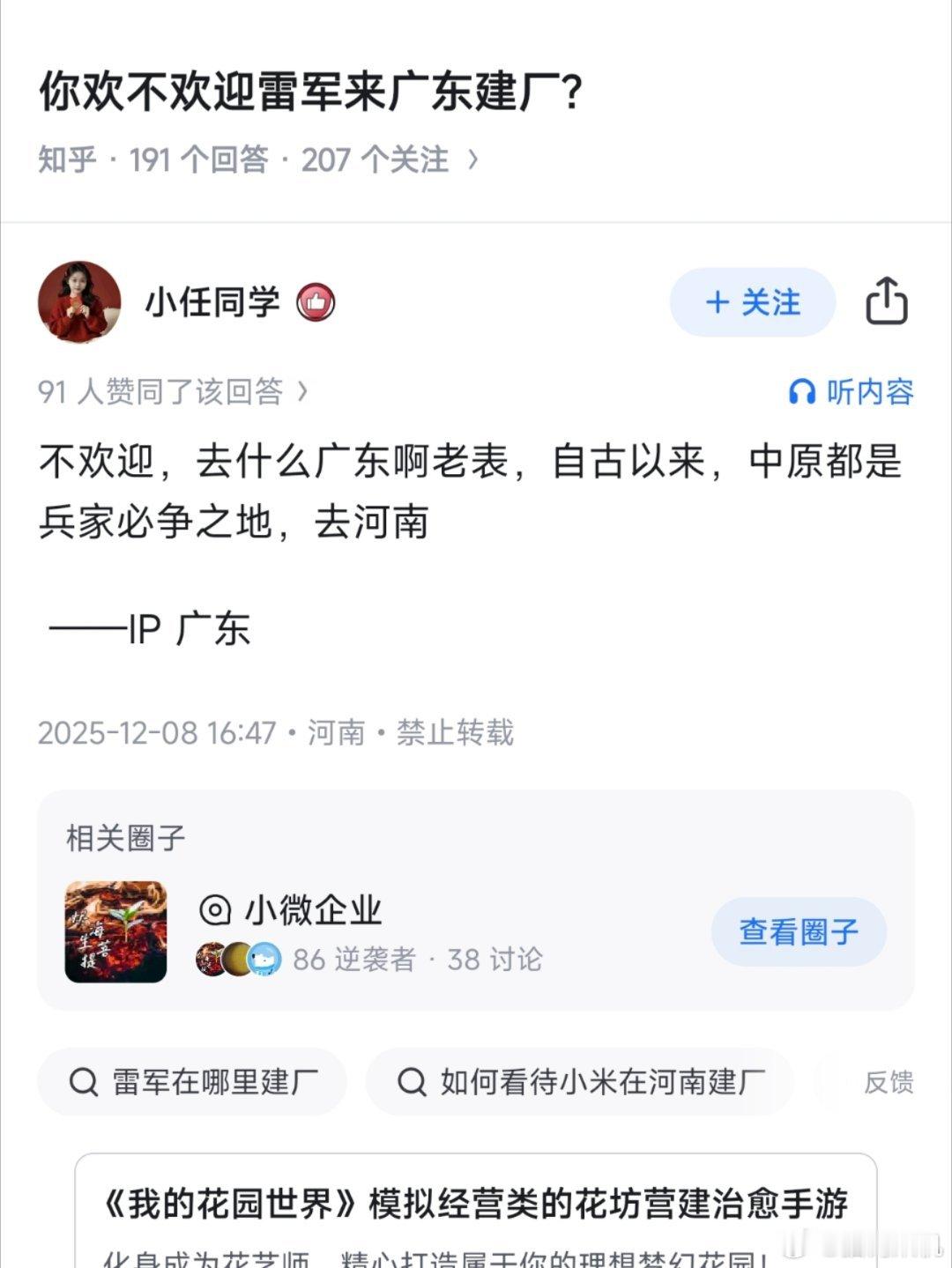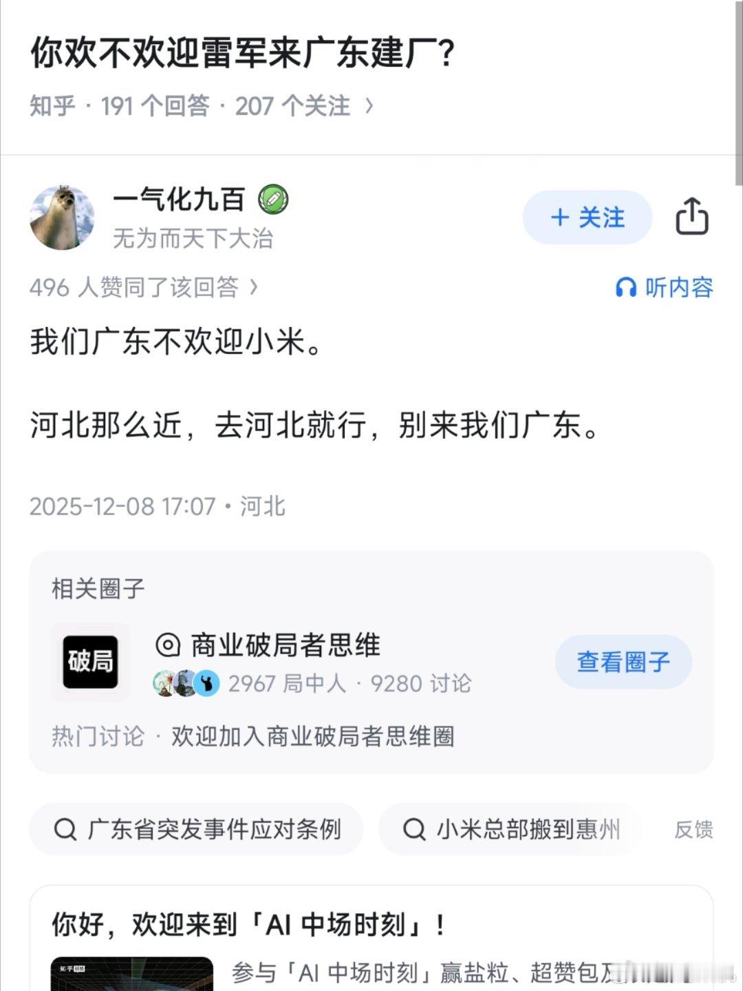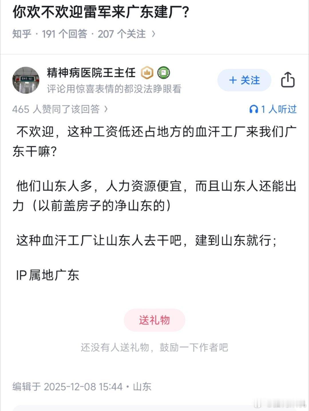你欢不欢迎雷军来广东建厂?我只能说我们广东不欢迎,要去就去四川建厂。 ip:广东