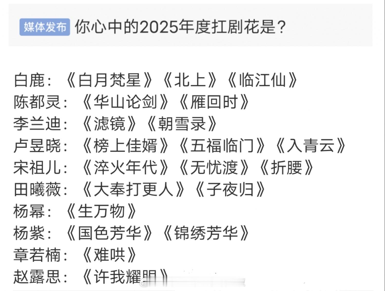 新浪电视剧认证的2025三大扛剧花:白鹿、杨紫、田曦薇2025年度扛剧花
