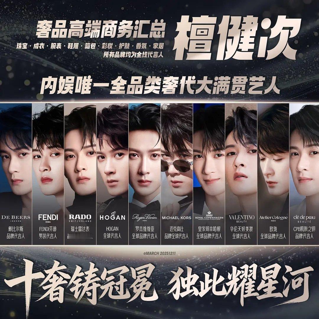 热知识,檀健次已经十奢代言了,七个都是全球✌🏻✌🏻剩下的也是该品牌现有最高T😊😊而且是内娱唯一全品类奢代大满贯艺人