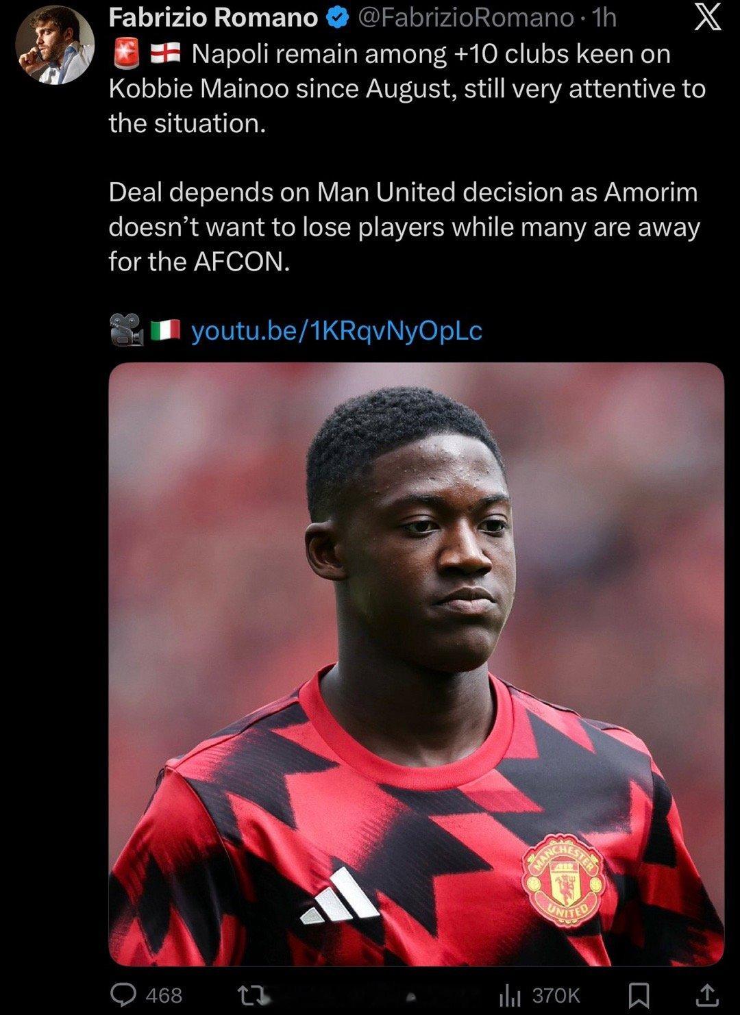 罗曼诺:多达10家俱乐部有意冬窗引进梅努,那不勒斯更是从夏窗就开始关注梅努的意向,球员想走寻求出场机会。决定权在俱乐部,阿莫林不想在冬窗外租球员,因为会有数名主力出发非洲杯