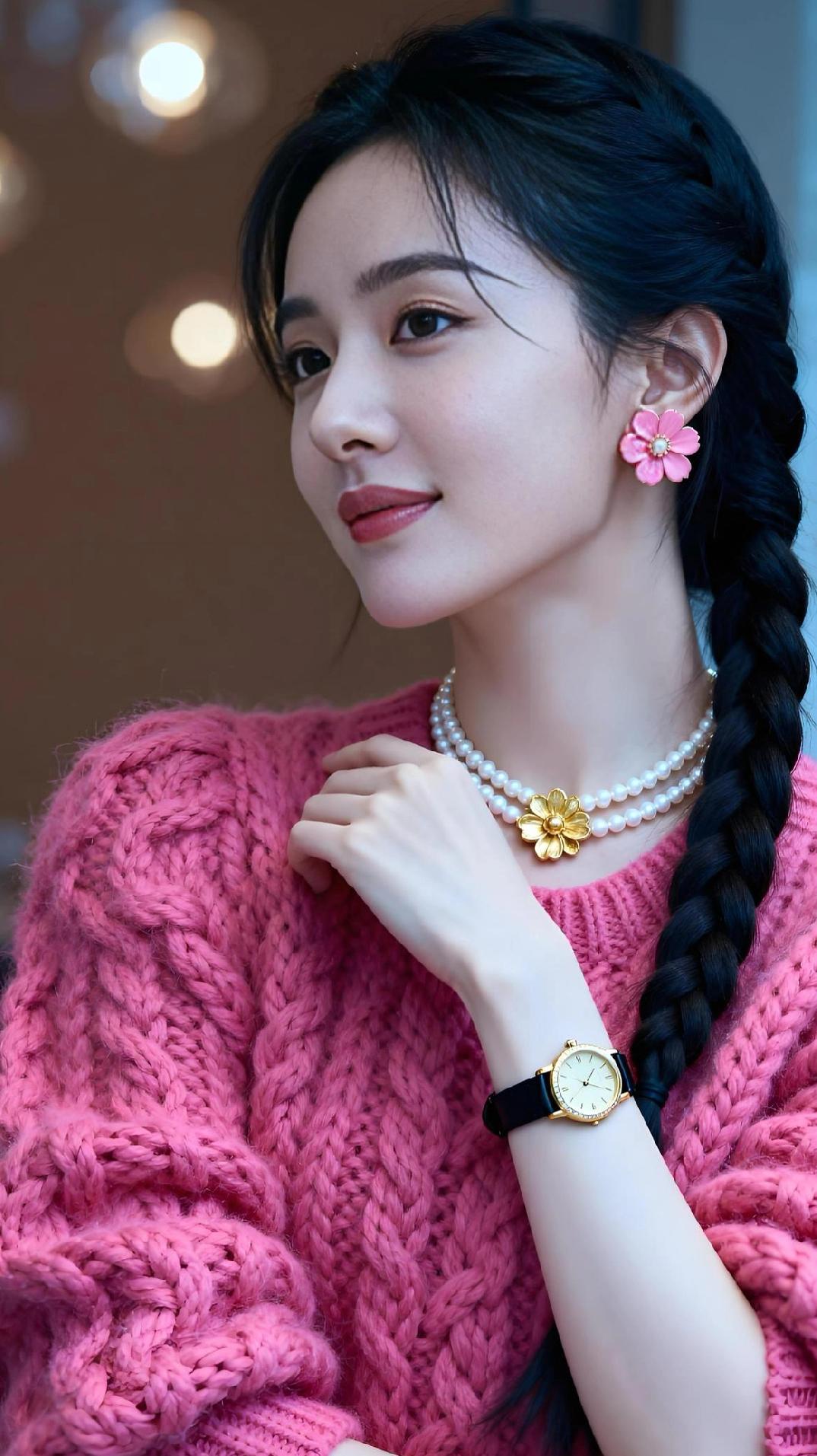 优雅黑发少女,灰色毛衣搭配,时尚又温暖。