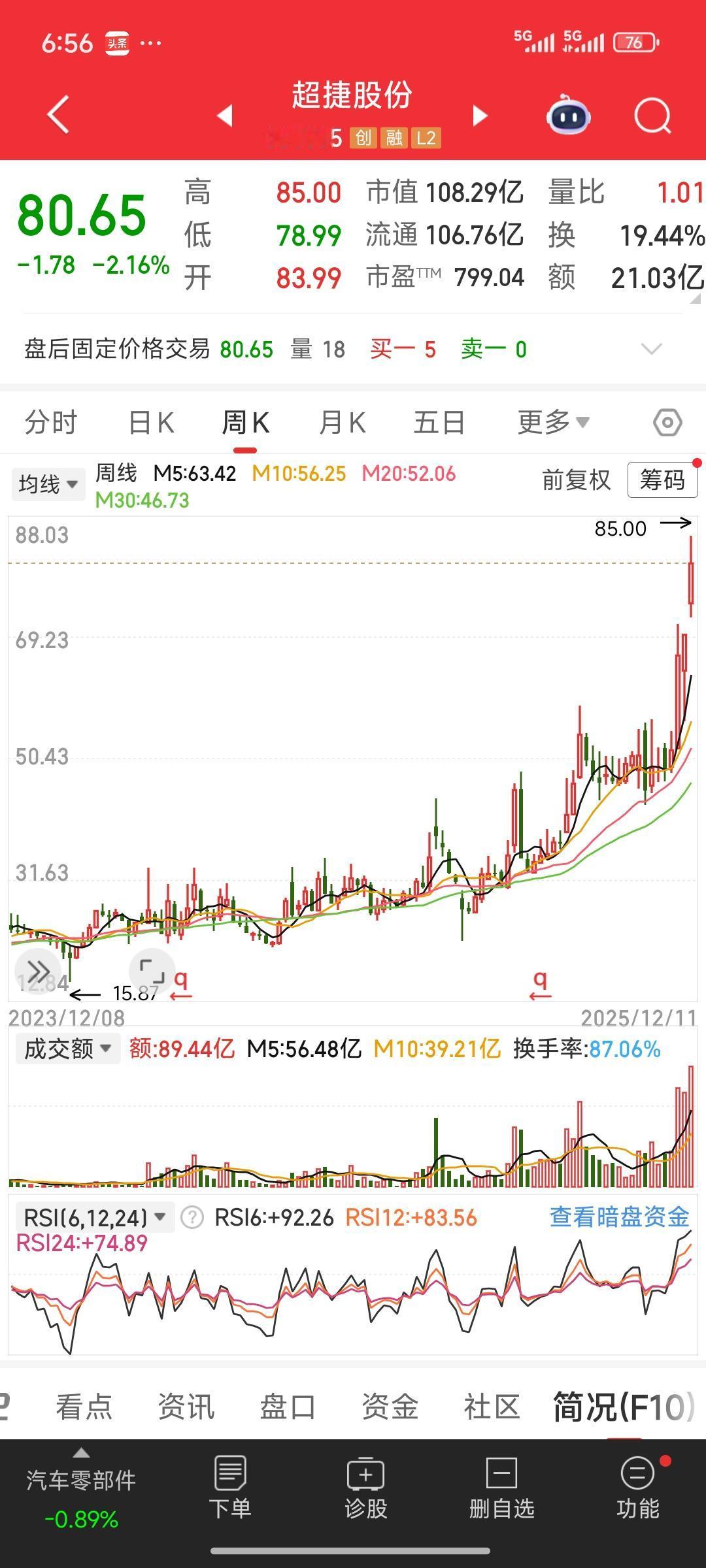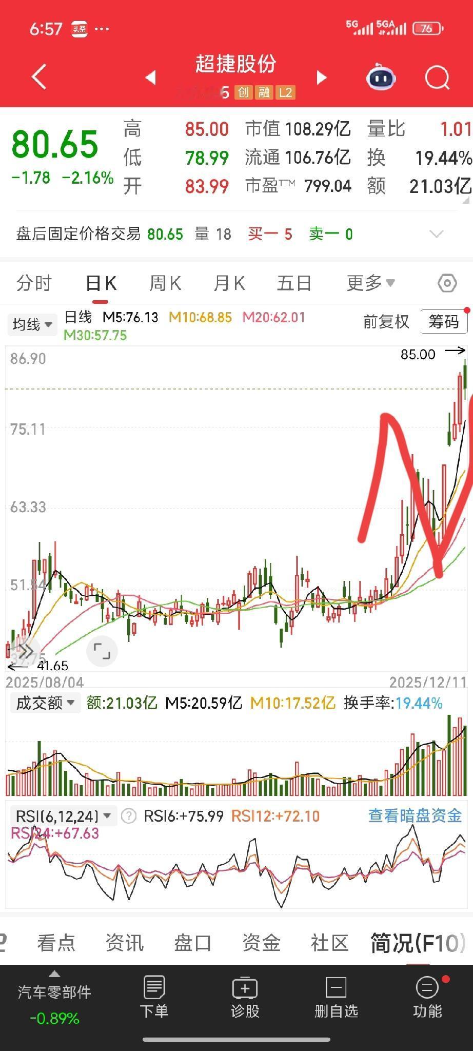 超捷股份,近期的大牛股,其股价已然翻了一倍。回顾它近一个月的K线运行图,会发现它在高位平台进行低幅度洗盘,持续了将近两个月。之后大幅拉升,拉升后又凶狠回调,且回调幅度极深,将大幅拉升的涨幅完全吞噬,回到了前期的平台线。 随后,它又展开凌厉进攻,形成了一个极为经典的N字上攻图形。由此可见,如今主力炒作十分凶狠。若仅依据图形操作,很容易被其凶狠的洗盘震下车。只有对其内涵或逻辑底线有深刻理解,并坚定持有信念的人,才能真正吃到那又长又大又肥美的“肉”。 股票 股票财经 股票交流