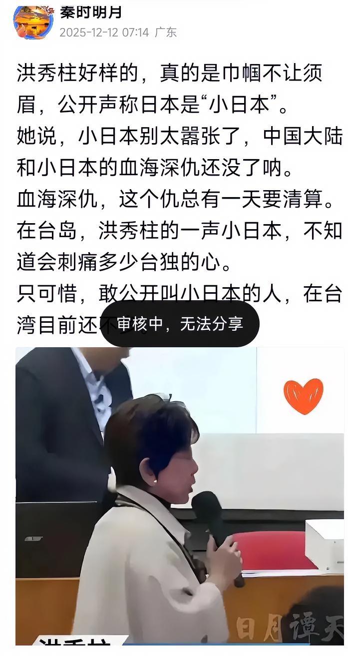 洪秀柱说小日本,才百余字的短文,审核半个小时还通不过? 说句小日本就真的有那么难么?