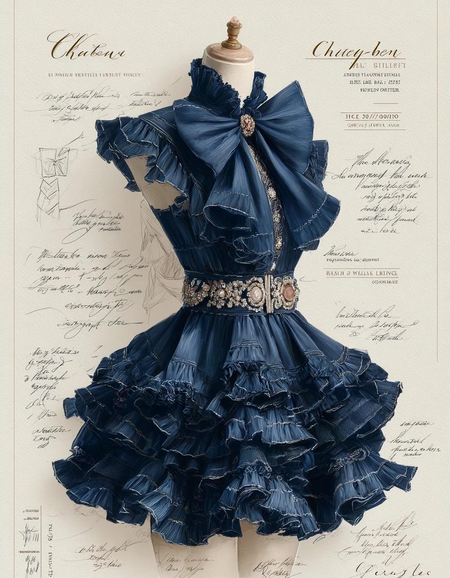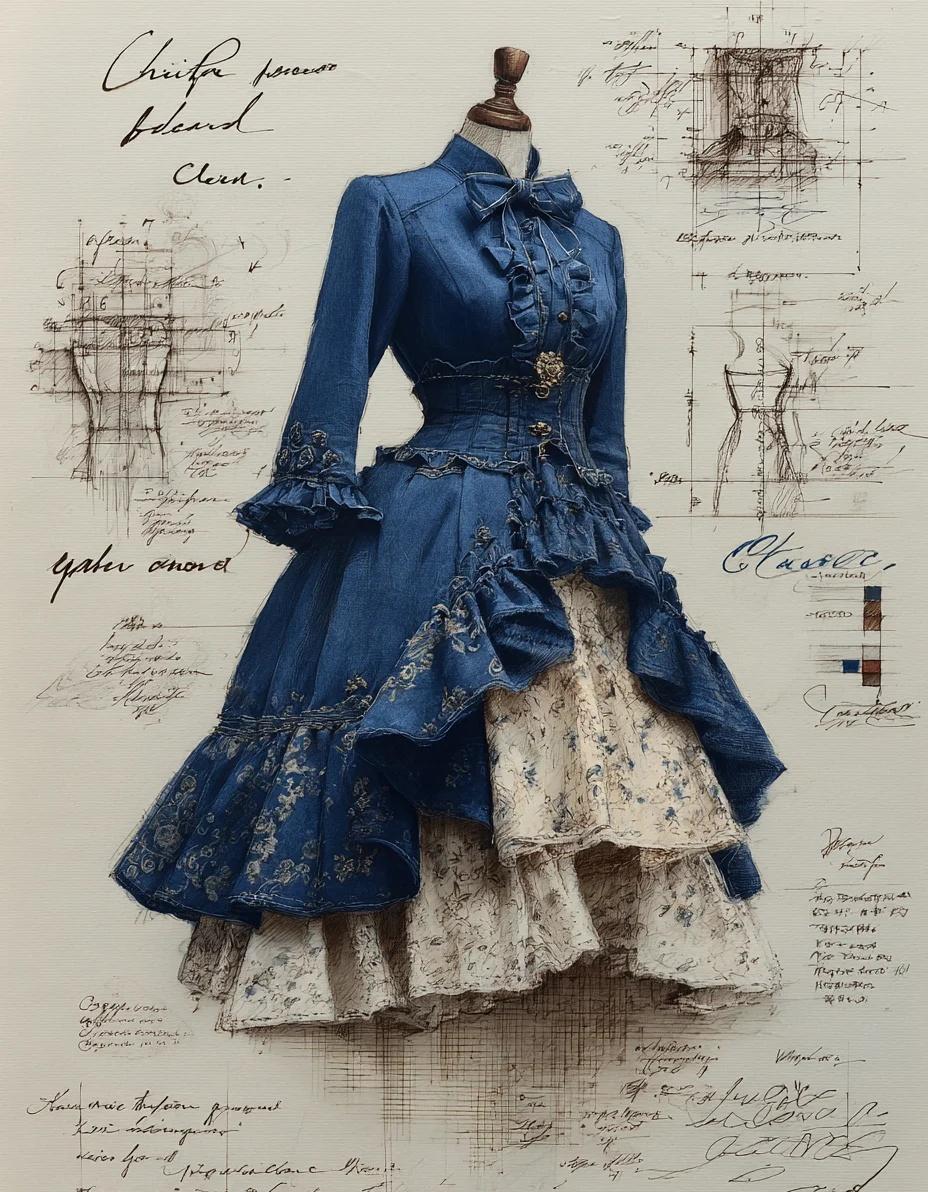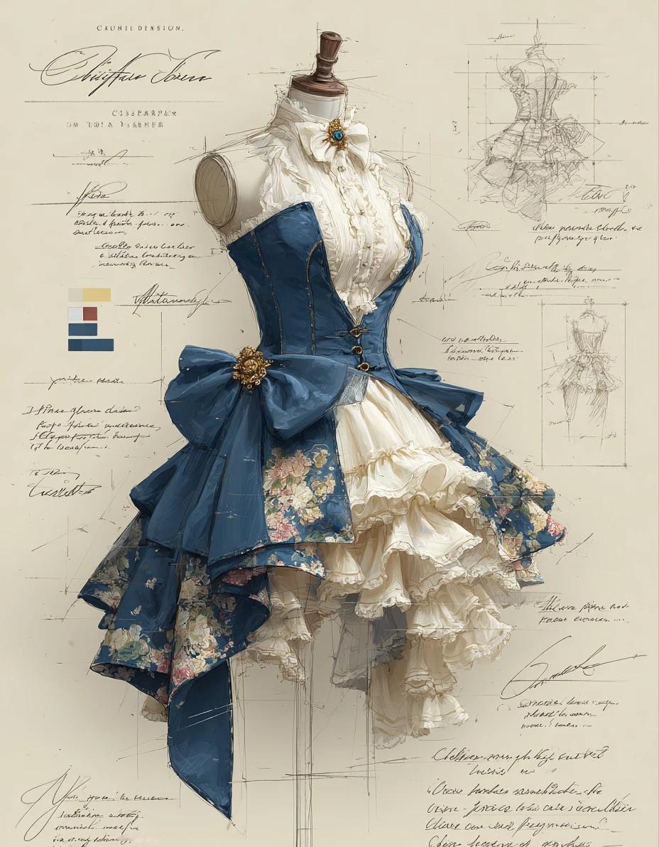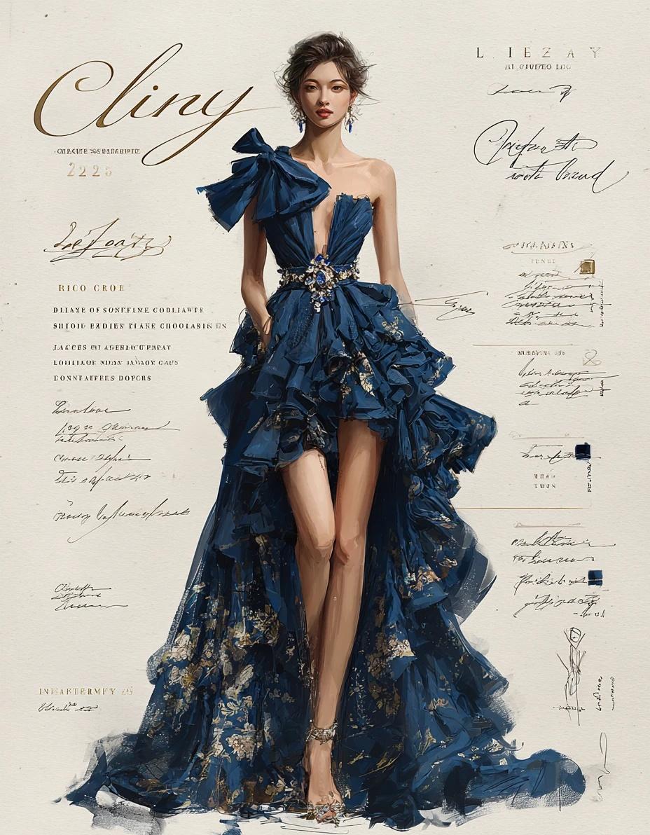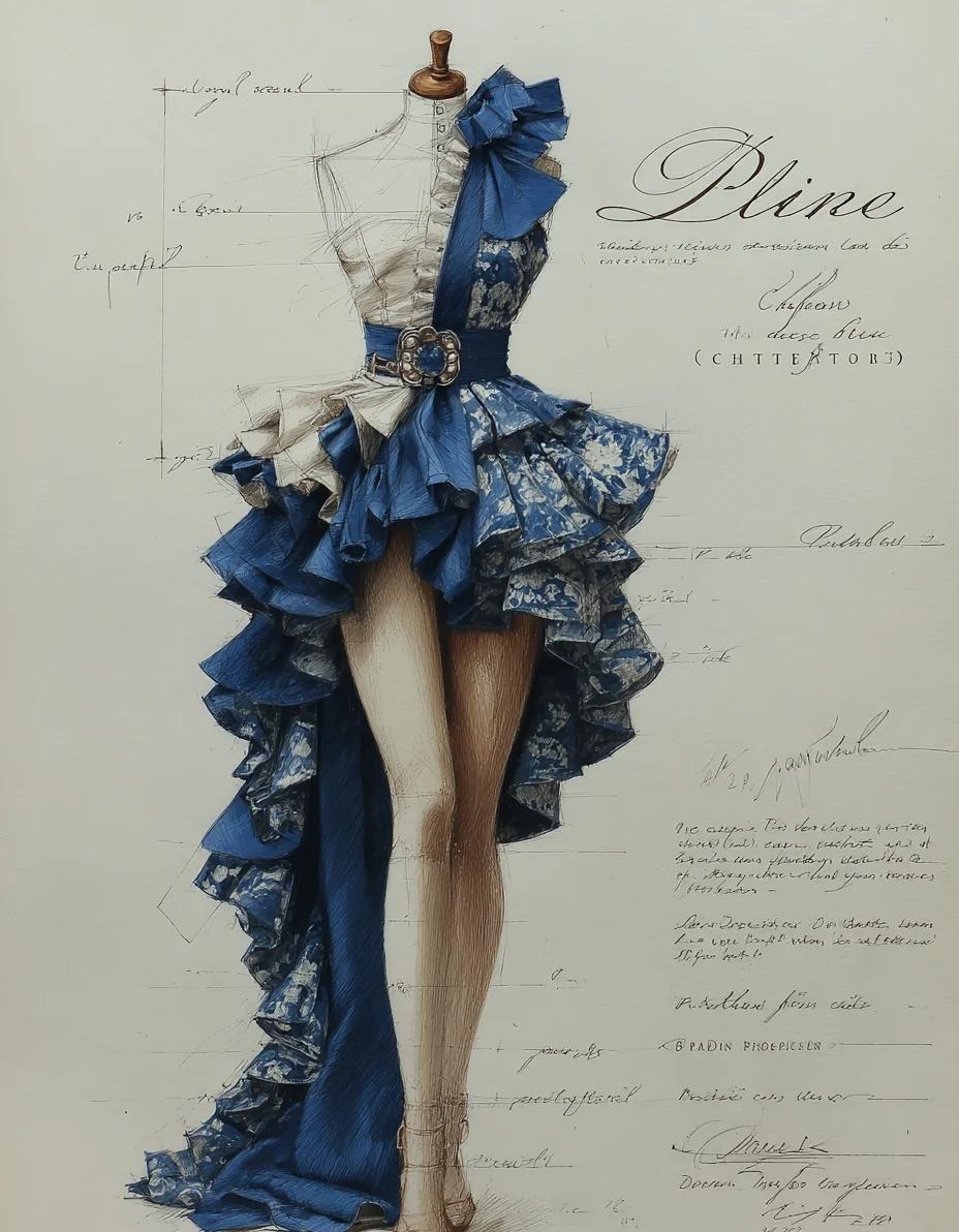 AI 服设| 代尔夫特蓝瓷花 生活美学 AI绘画有点东西 时尚的轮回 花卉图案 原创服装设计 在一片神奇的蓝色花海中 时装插画 青花瓷与花的艺术碰撞 华丽与复古