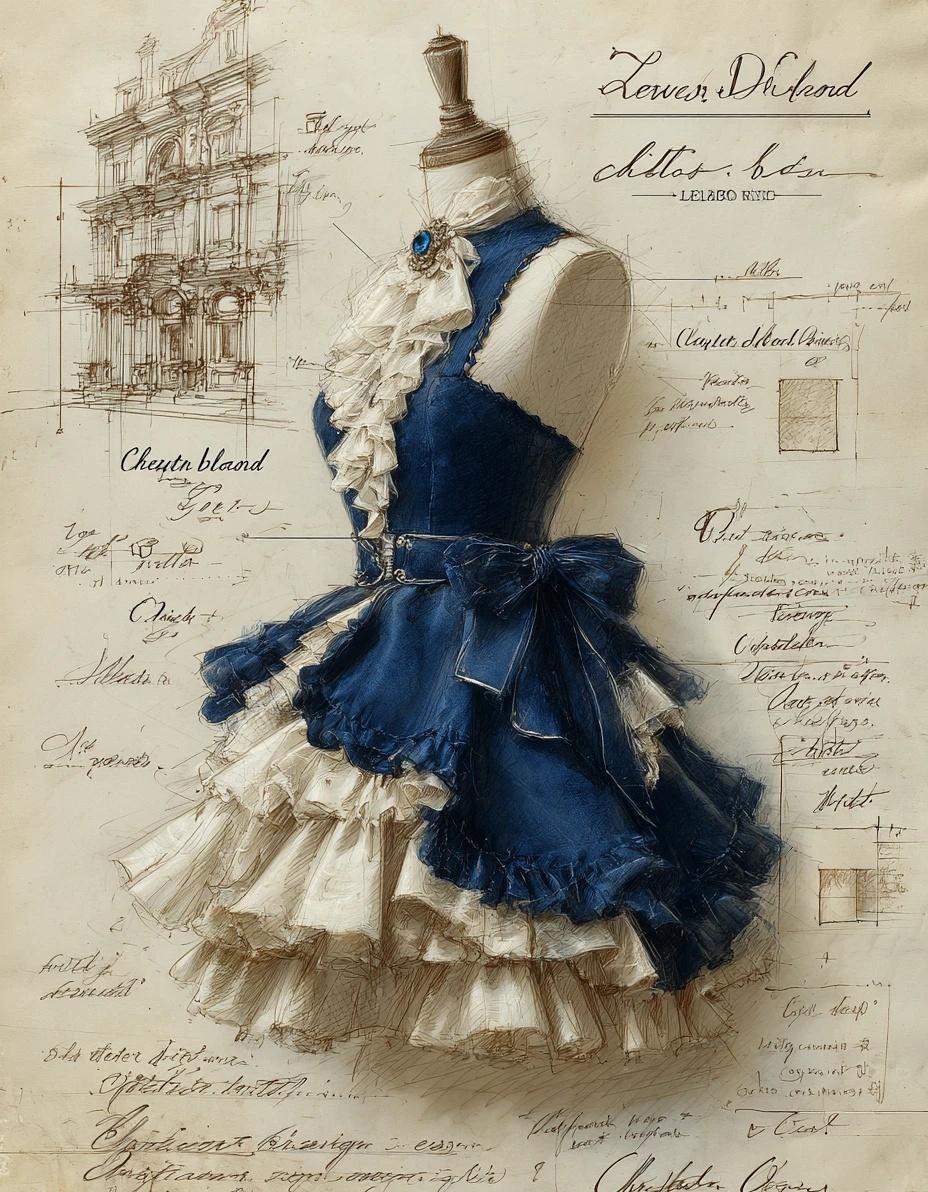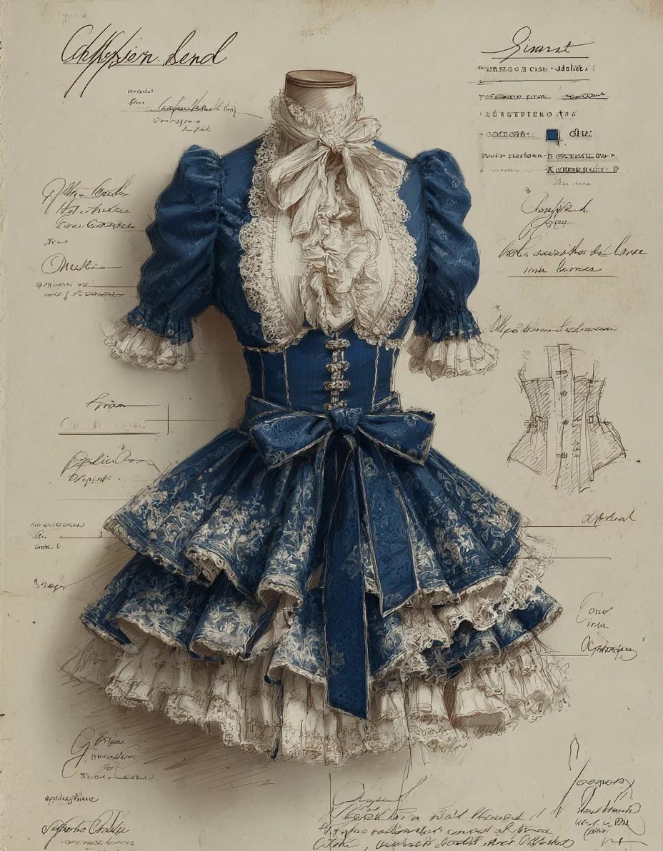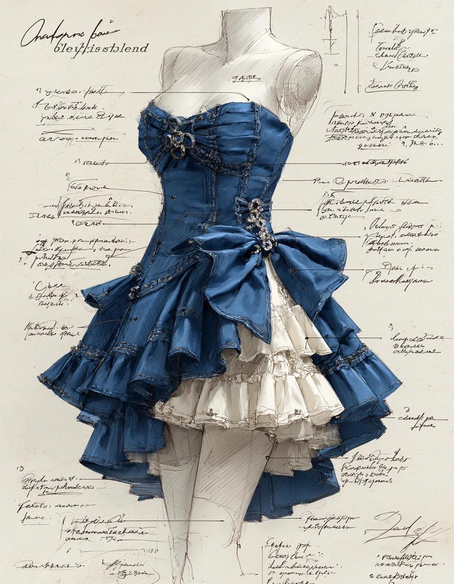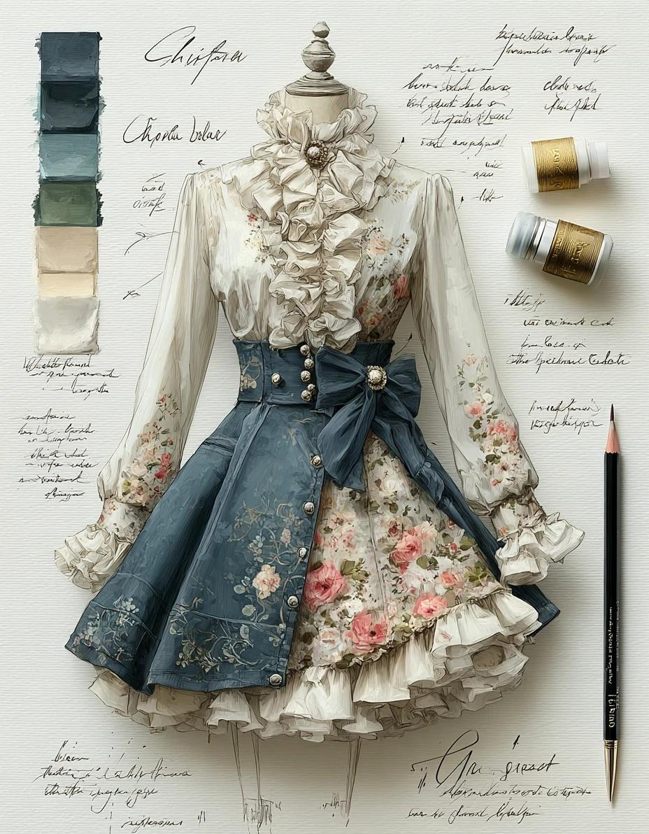 AI 服设| 代尔夫特蓝瓷花 生活美学 AI绘画有点东西 时尚的轮回 花卉图案 原创服装设计 在一片神奇的蓝色花海中 时装插画 青花瓷与花的艺术碰撞 华丽与复古