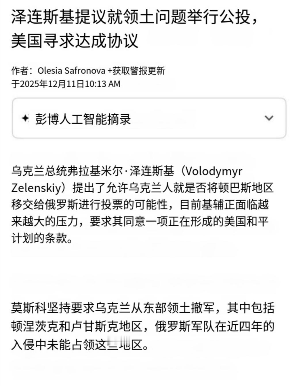 泽连斯基面对美国特朗普的步步紧逼,他干脆将乌克兰割让土地问题提交乌克兰全民公投。 如果公投反对割让领土,特朗普的以乌克兰割让领土的“和平方案"就被乌克兰人民彻底被否決了。