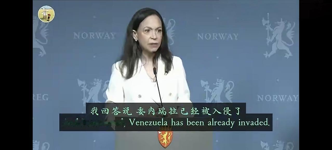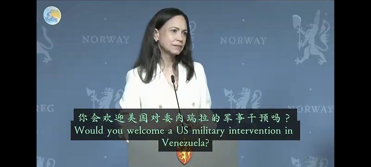 面对瑞典记者提问“是否欢迎美国入侵委内瑞拉?”,委内瑞拉诺贝尔和平奖获得者马查多没有直接回应,而是把“入侵”这个外部概念转化成内部概念,说内部的腐败与犯罪早已经入侵委内瑞拉了,而这些行为背后有着强大的资金支持,进而委婉地说欢迎国际力量斩断内部资金的来源,这也是对于记者问题的回答,欢迎美国入侵委内瑞拉!