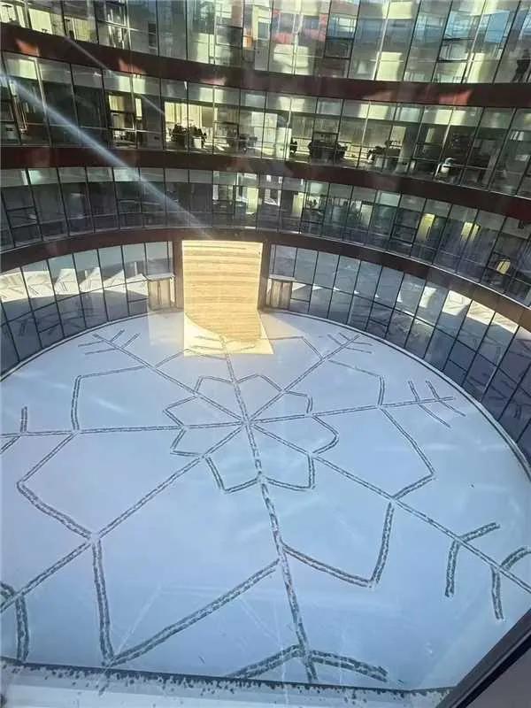 刚开完行情会议出来就看到保洁大哥画了一朵大雪花❄瞬间我们都惊讶了,分享给您看看,您觉得他有画画天赋吗? (安科研) 雪景画作 雪绘画 雪景作画 下雪画 雪花简笔画 雪花盐画 雪花图