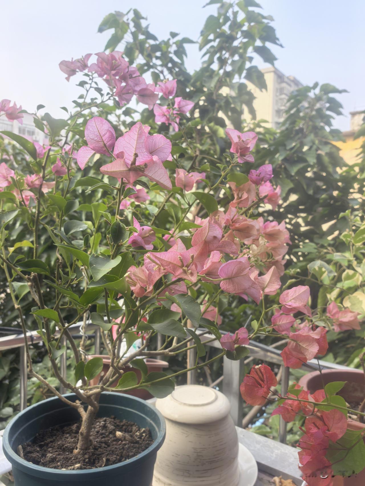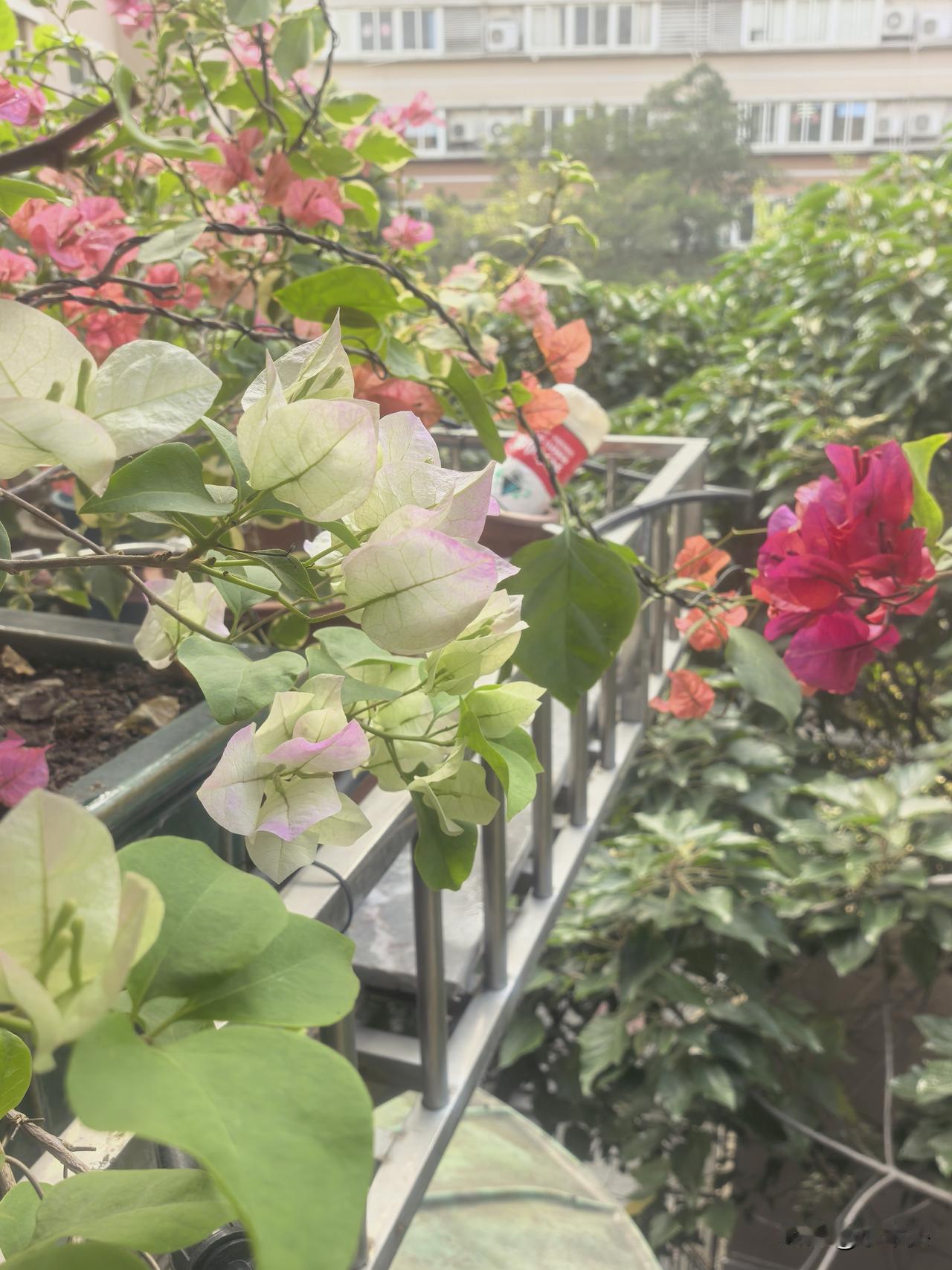 他们说我不该送,但看到花开那刻,我觉得值了 两个月前,我把3盆三角梅送给朋友,一周前,又送了3盆,共6盆。 分别是:广红樱,马斯,金心双色,橙冰,中国红,卡亚塔。 朋友的露台朝南。 有网友说“这么好的品种不该送”。 昨天朋友发了照片,看到它们在她家全日照下爆花的样子——广红樱仙气飘飘,马斯飘逸,金心橙白长花苞,卡亚塔更是灿烂,就连非常懒花的中国红,也爆出一朵朵鲜艳的花儿,她说最喜欢的是橙冰,高贵冷艳! 我反而释然了。 也许有人在乎拥有,我更在乎绽放。最好的花,就该开在最适合的地方。 这次“损失”了六盆花,却换来一个养花真理,三角梅喜阳光,否则,怎么折腾也没用。 回头看看我家阳台的,叶子发黄,花落满地。 赠花不悔,各得其所,也许这也是养花人的浪漫。 三角梅 赠三角梅 赠花记 三角梅广红缨