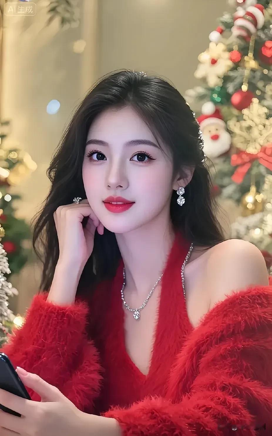 圣诞树上的光揉进红唇,红绒裙裹着暖冬的热烈,颈间银链是节日里轻晃的星。 红礼服气质美女 粉紫圣诞树 红围巾美女