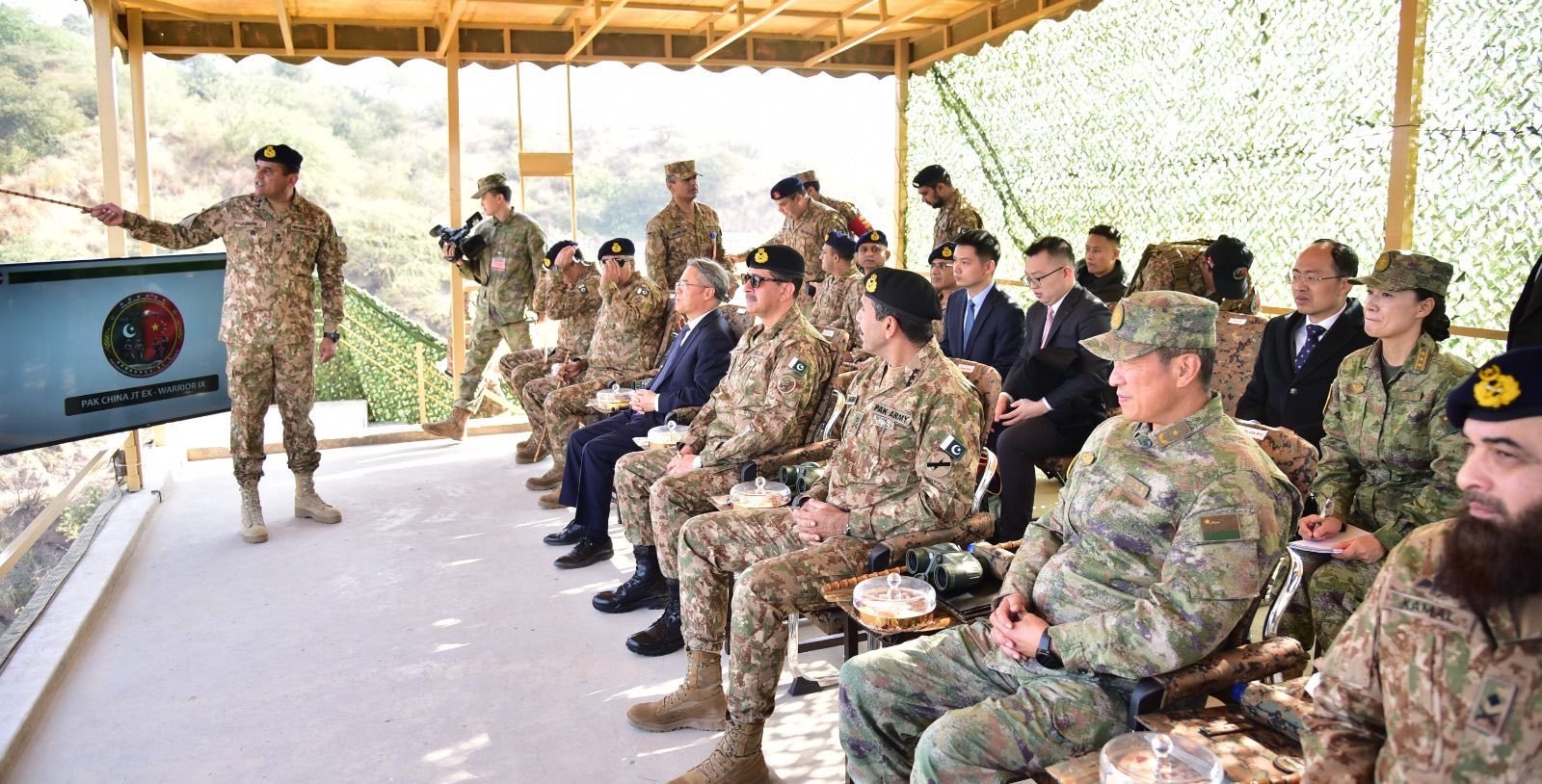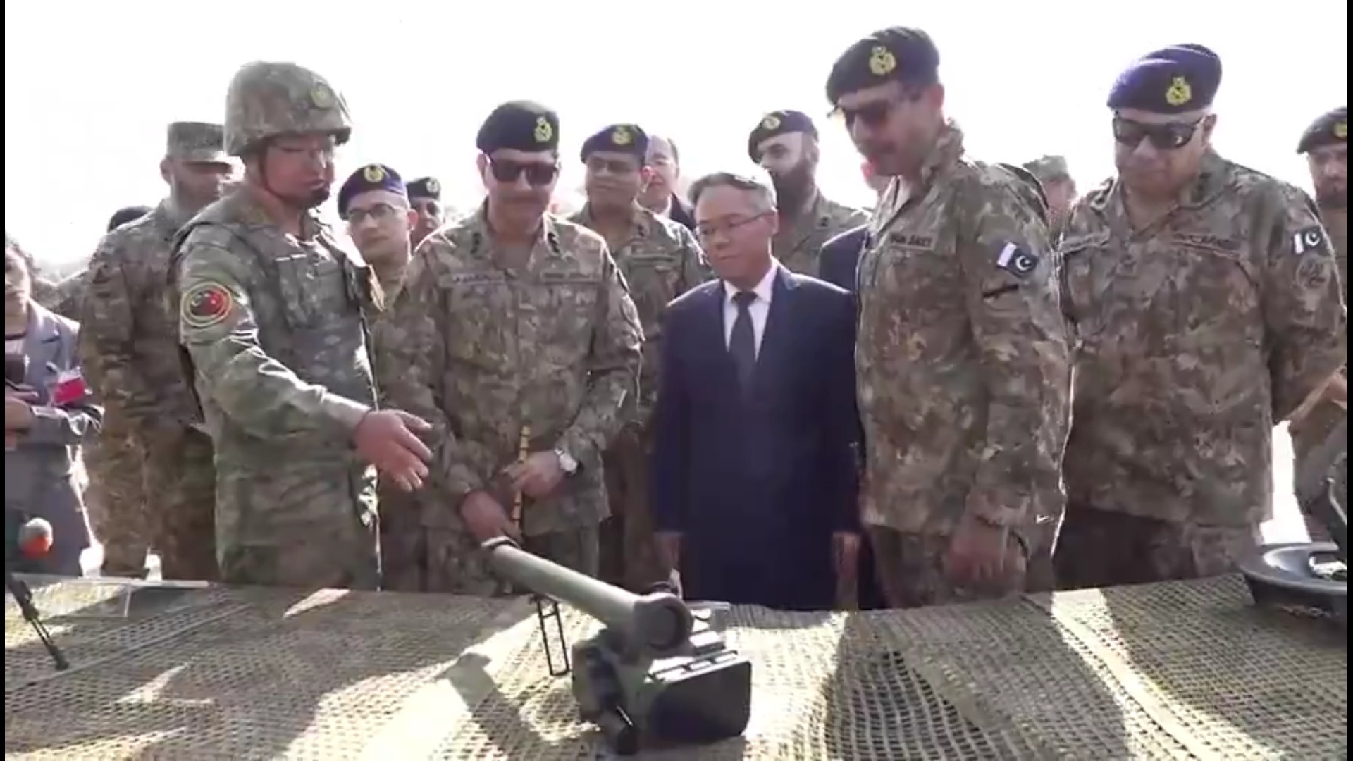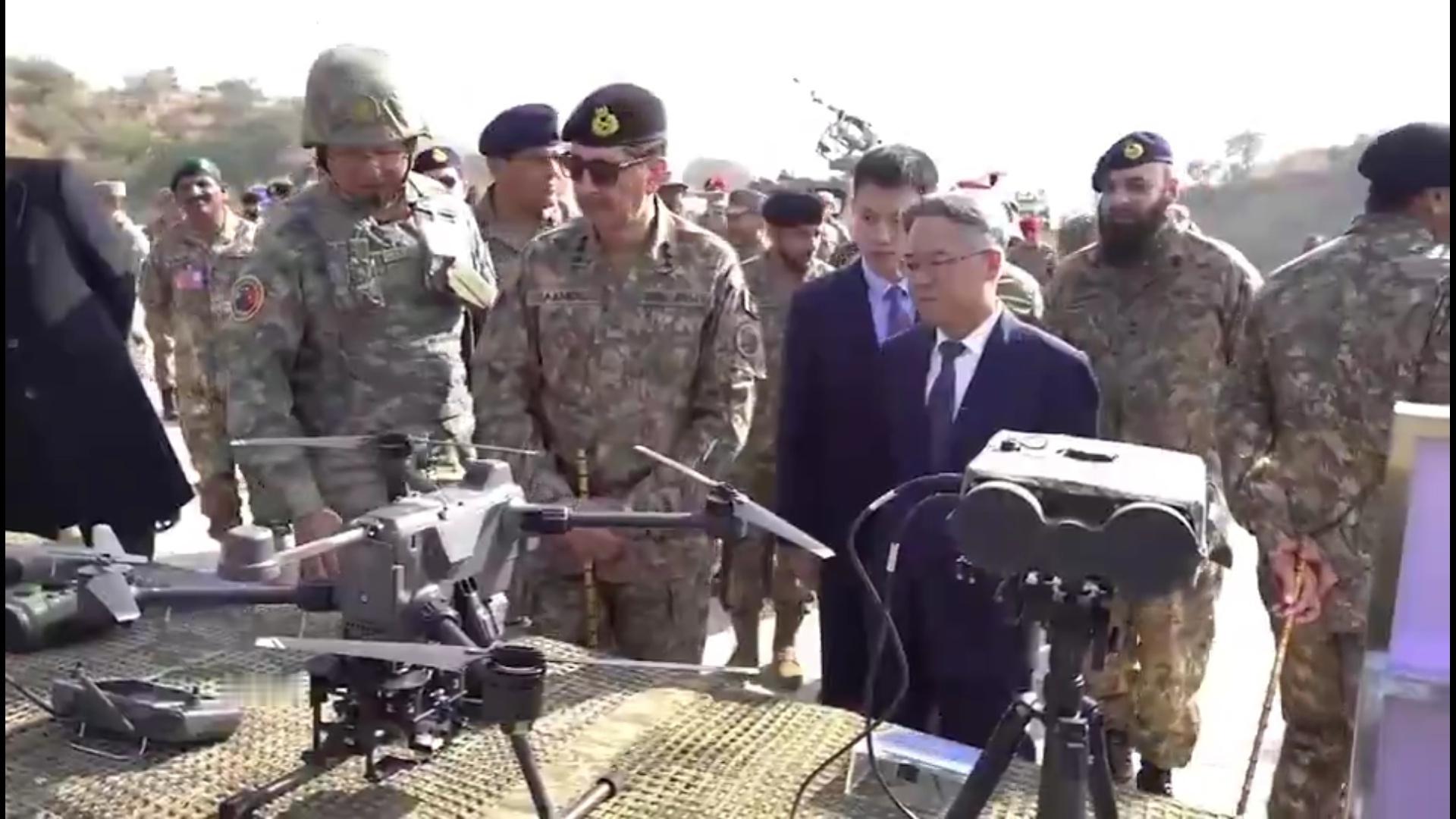 中巴两国陆军于11月28日至12月14日举行"勇士-9 "联合反恐演习,12月11日,巴基斯坦国家反恐中心在帕比举行了贵宾日仪式,中国驻巴基斯坦大使姜再冬作为主宾出席了仪式,陪同出席的还有来自中国的多位高级官员,巴基斯坦陆军总参谋长作为特邀嘉宾出席了仪式。图1为姜再冬大使等参观单兵微型导弹。