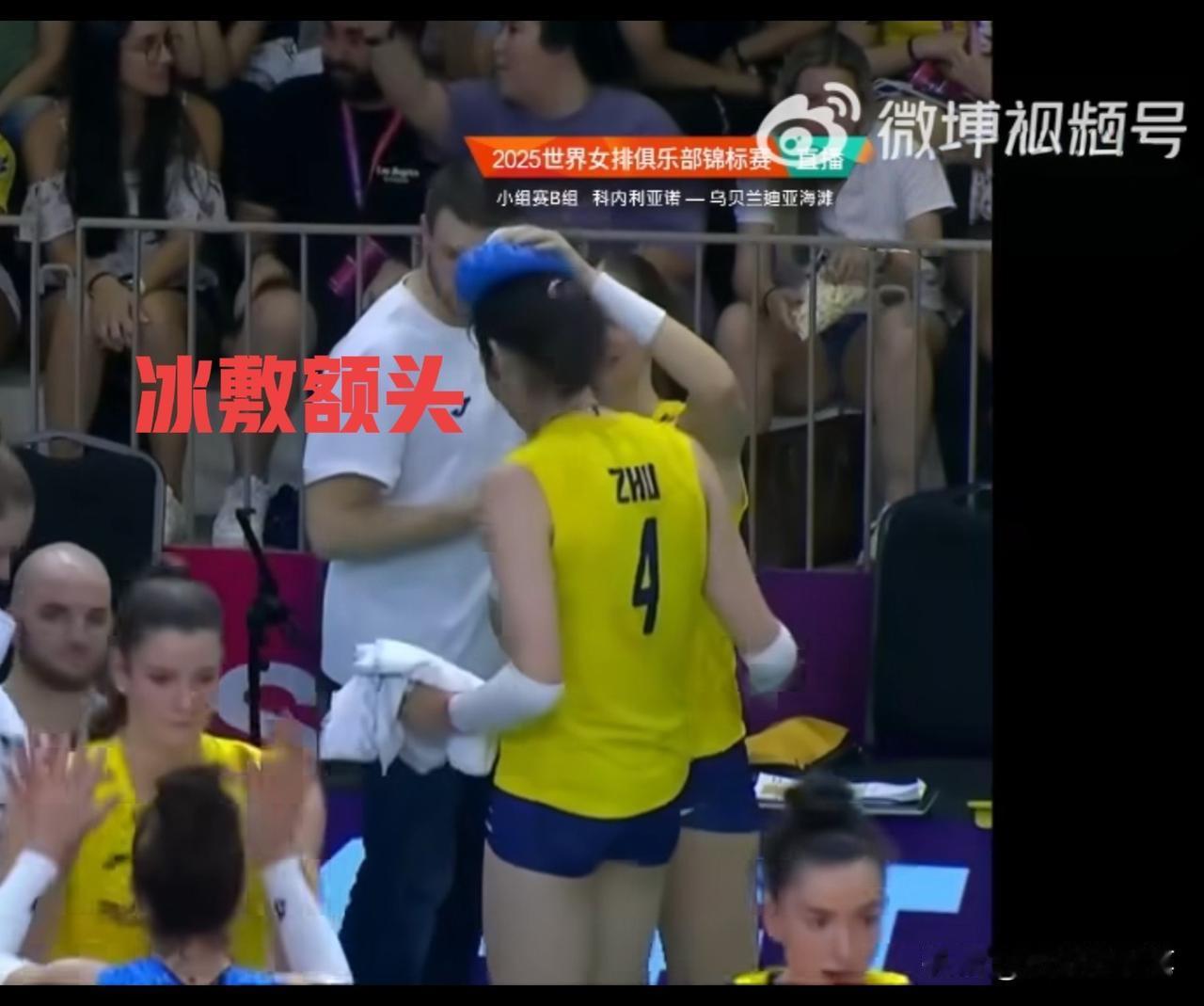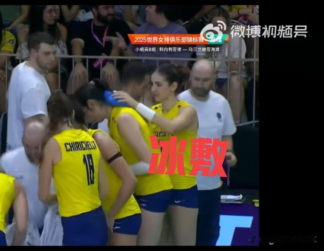 今晨队友为朱婷做冰敷这一幕,太暖心了[大笑] 瞧,13号队友穆纳里尼站在朱婷背后,轻轻地将冰袋放在朱婷后颈处,顺手又把朱婷的头发整理一遍,持续为满头大汗的朱婷降温。最后她转身继续将冰袋置于朱婷的额头,为其送清凉。搞笑的是,一旁的法尔直接用手做扇,为加比降温,可想而知,这场馆有多热。 朱婷,真不容易,她在排坛取得的成功,都是用一滴滴汗水拼来的。朱婷