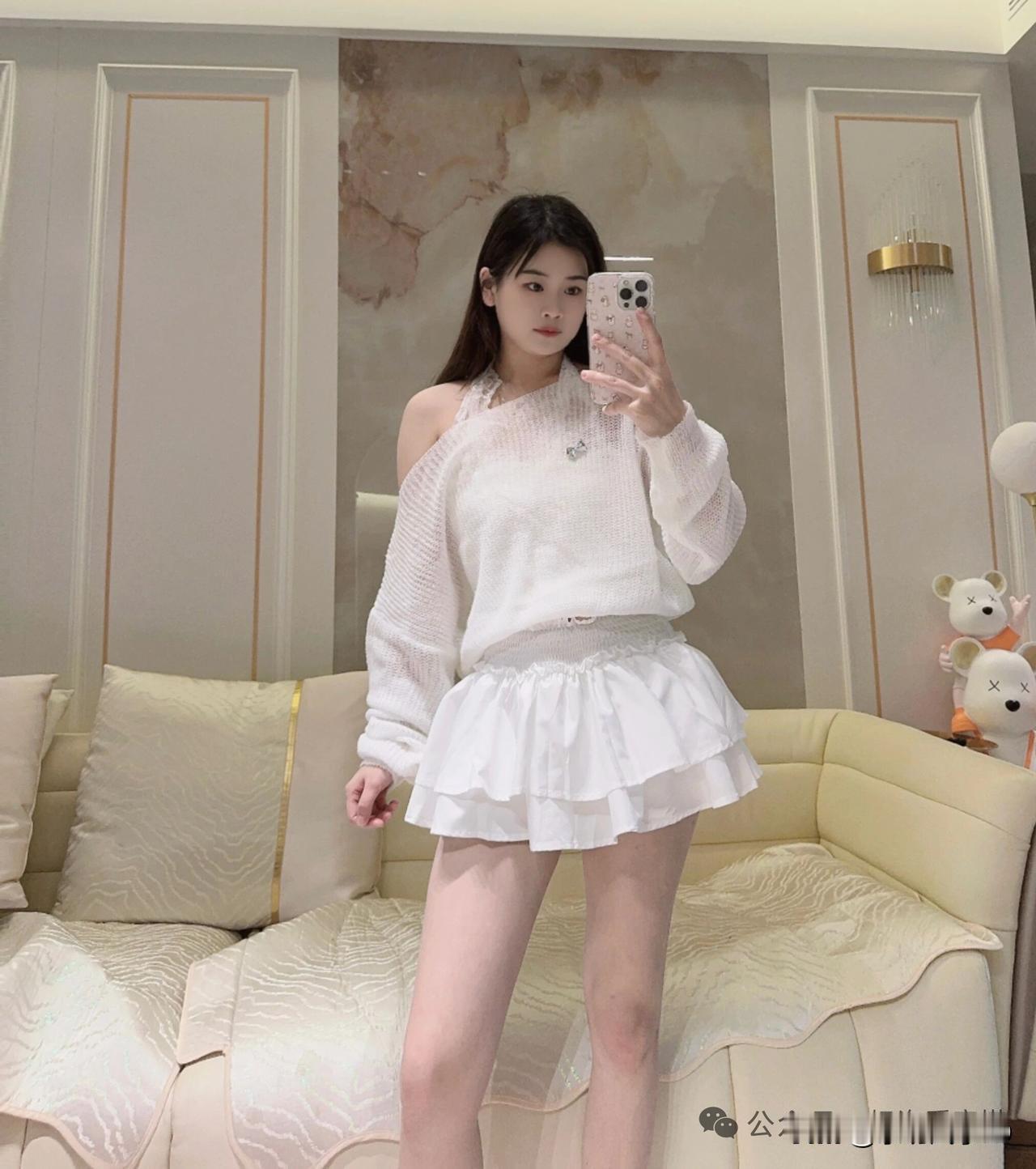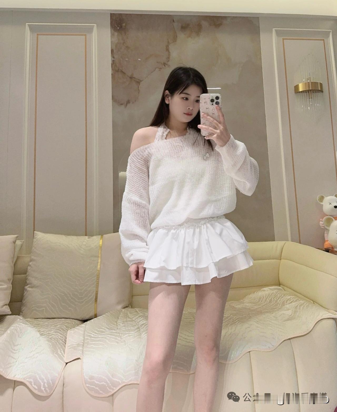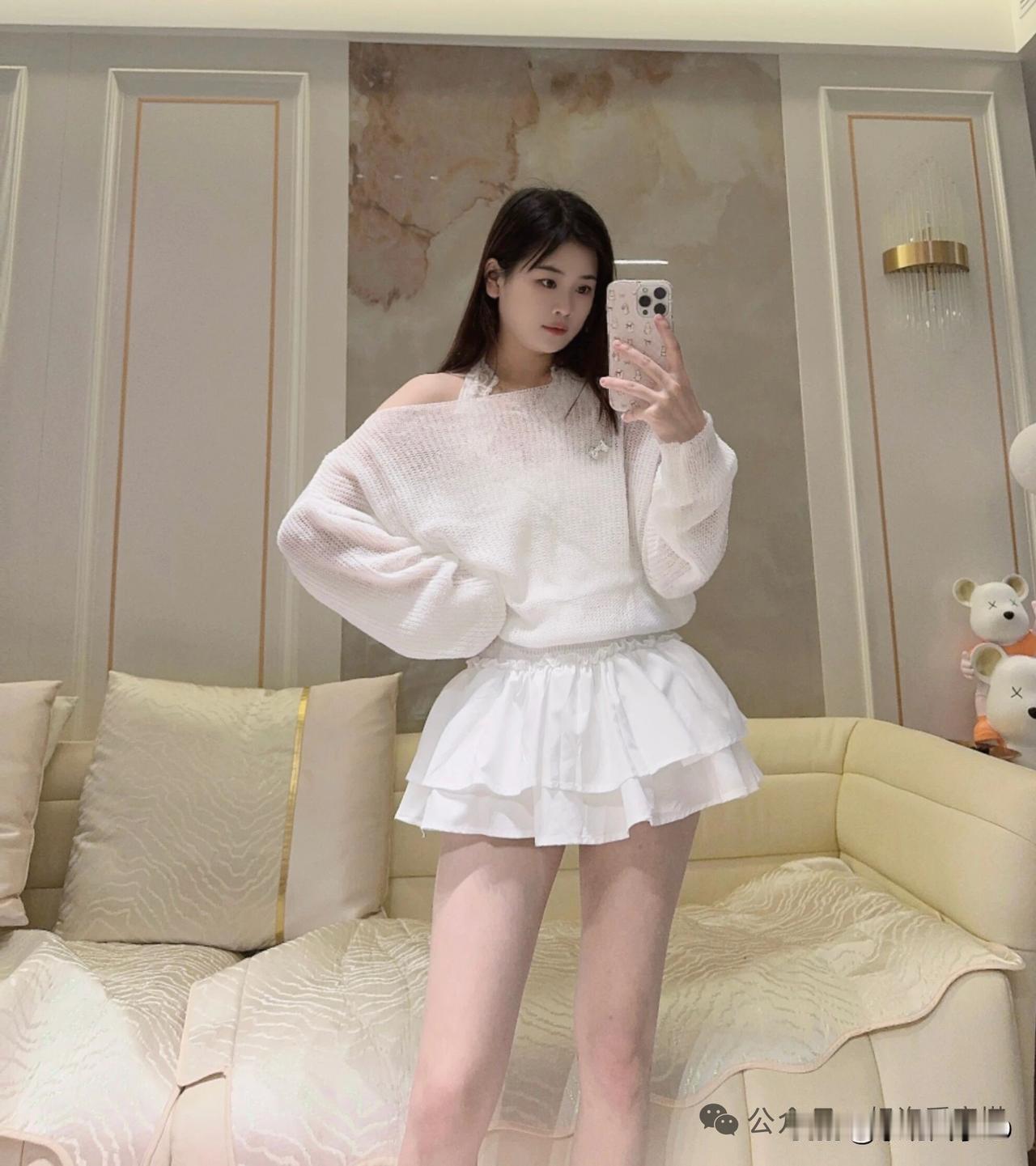 甜美少女风穿搭,白色毛衣搭配荷叶边短裙,清新可爱!💕