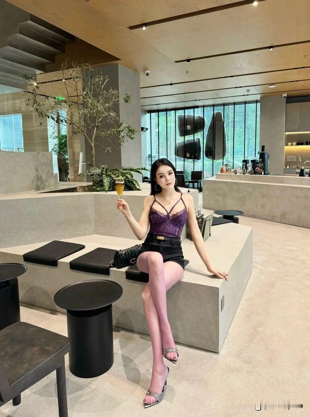 优雅紫裙,性感黑裤,镜中倒影,尽显魅力!💃👗👠
