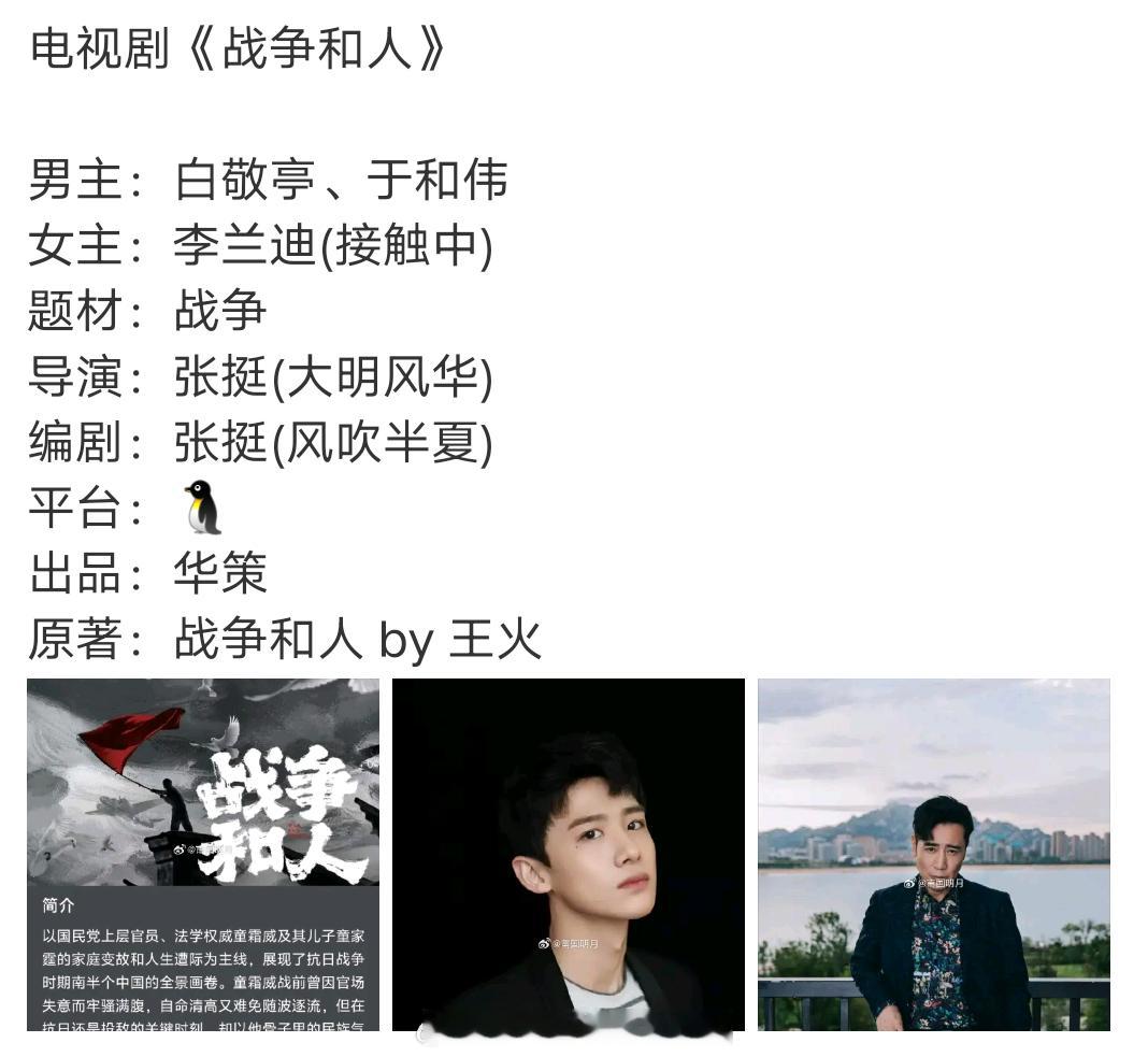 李兰迪不演《月都花落》了,目前在接触《战争和人》,人设是男主白月光。再加上客串千里江山图,两部都是男频正剧大制作,搭档张若昀和白敬亭,李兰迪临时找的填档剧质量挺不错。