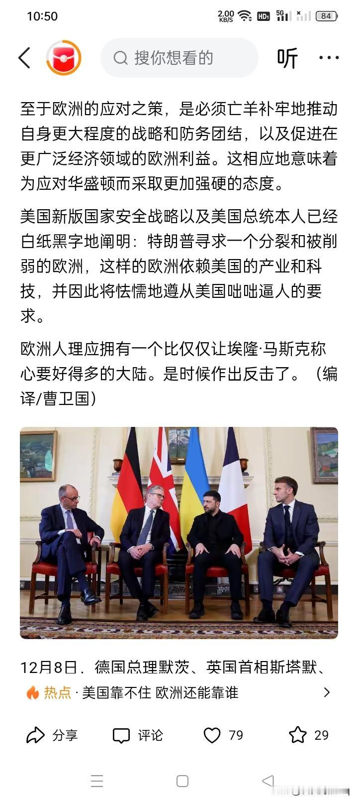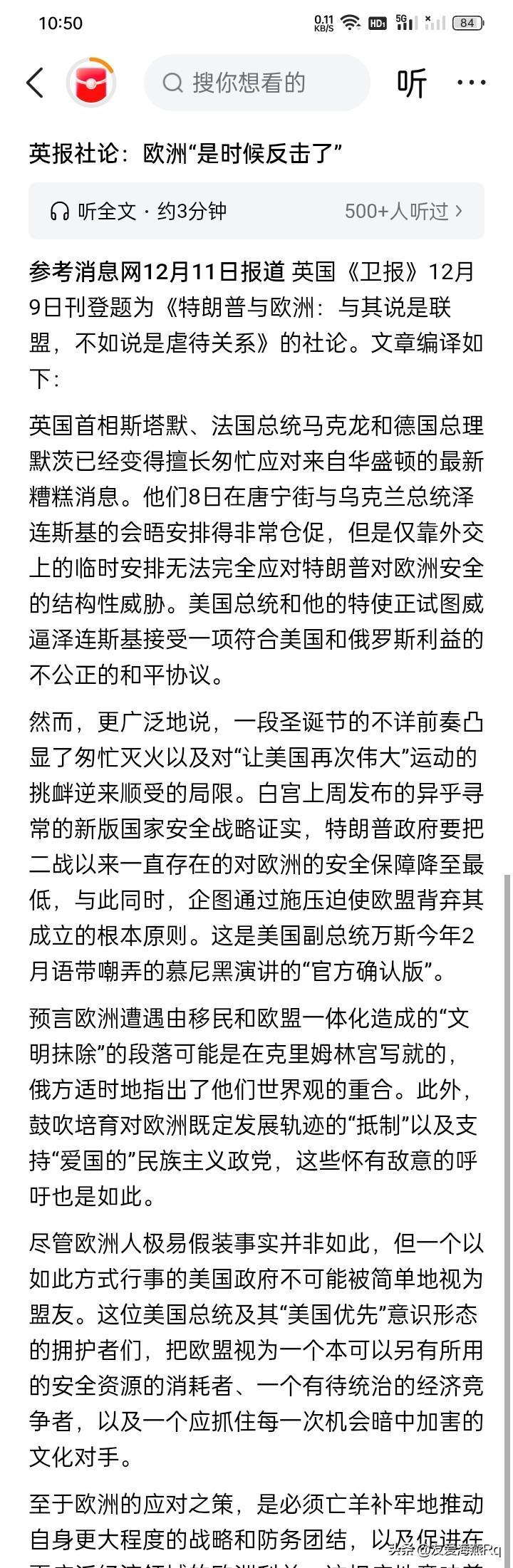 按捺不住的怒气,摇旗呐喊! 自从特朗普的美国政府上台执政后,对全世界、对欧洲异乎寻常的不友好态度,终于让英国媒体《卫报》忍无可忍,发出了前所未有的口气严厉的社论:《特朗普与欧洲:与其说是联盟,不如说是虐待关系》。 特朗普政府在国际经济、外贸上的所做所为,好像早已经被全世界的很多国家所不耻。在乌克兰的战争中,所抱态度和立场,更令全世界很多的国家平添深重的忧虑,特别是不顾整个欧洲的安全问题,唯利是图,唯我独尊,似乎为了一己私欲,千方百计,甚至是不择手段让乌克兰付出割让土地和主权的损失,更让欧洲国家寝食不安。 凡此种种,说明美国与欧洲在传统意义上的长期盟友关系,受到了严重的冲击,甚至是有可能彻底的分裂。 本来,欧洲无论在经济、科技和军事上,都在全世界占据首屈一指的地位,好像根本就没有必要唯美国马首是瞻,俯首帖耳,更没有必要指望美国的保护。