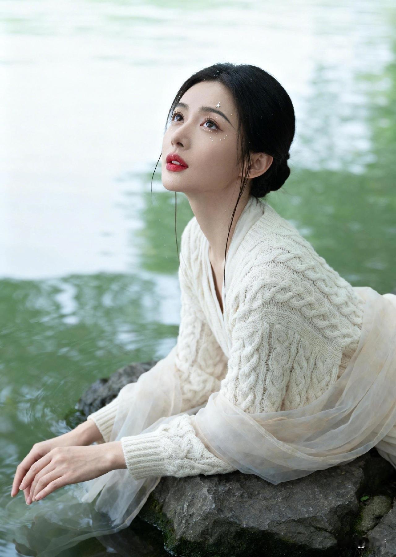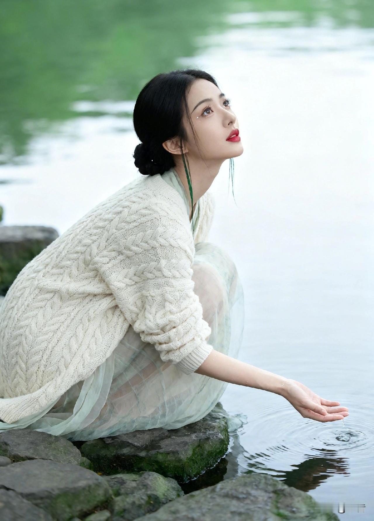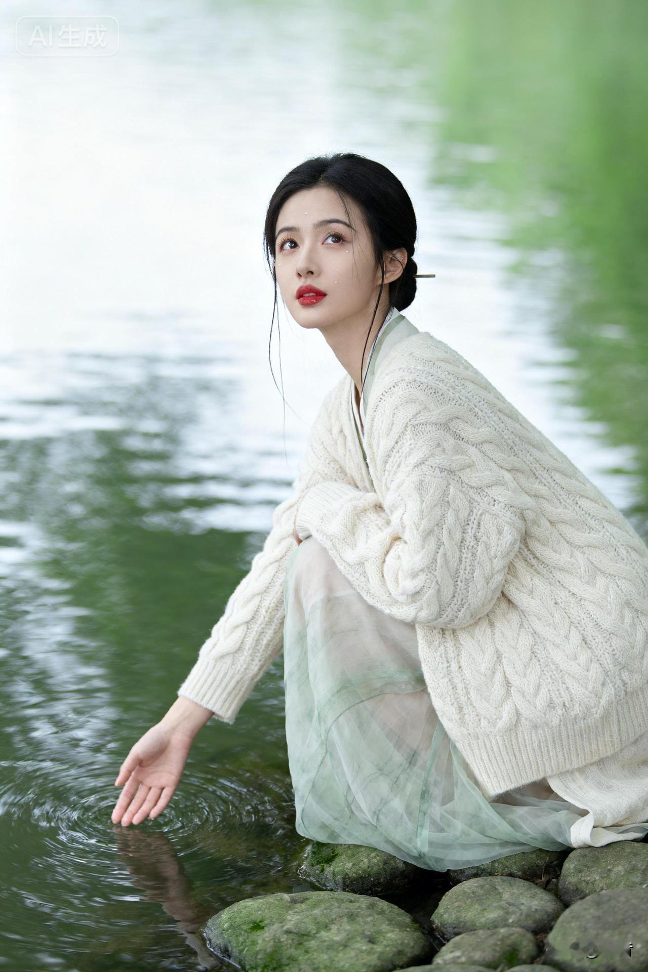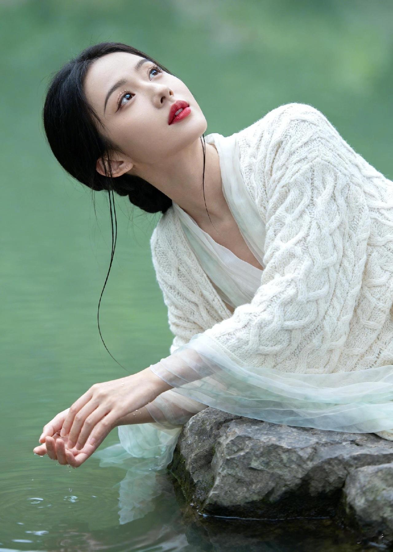青石水畔 近景半身,眉目如星 动静之间,尽是东方含蓄之美