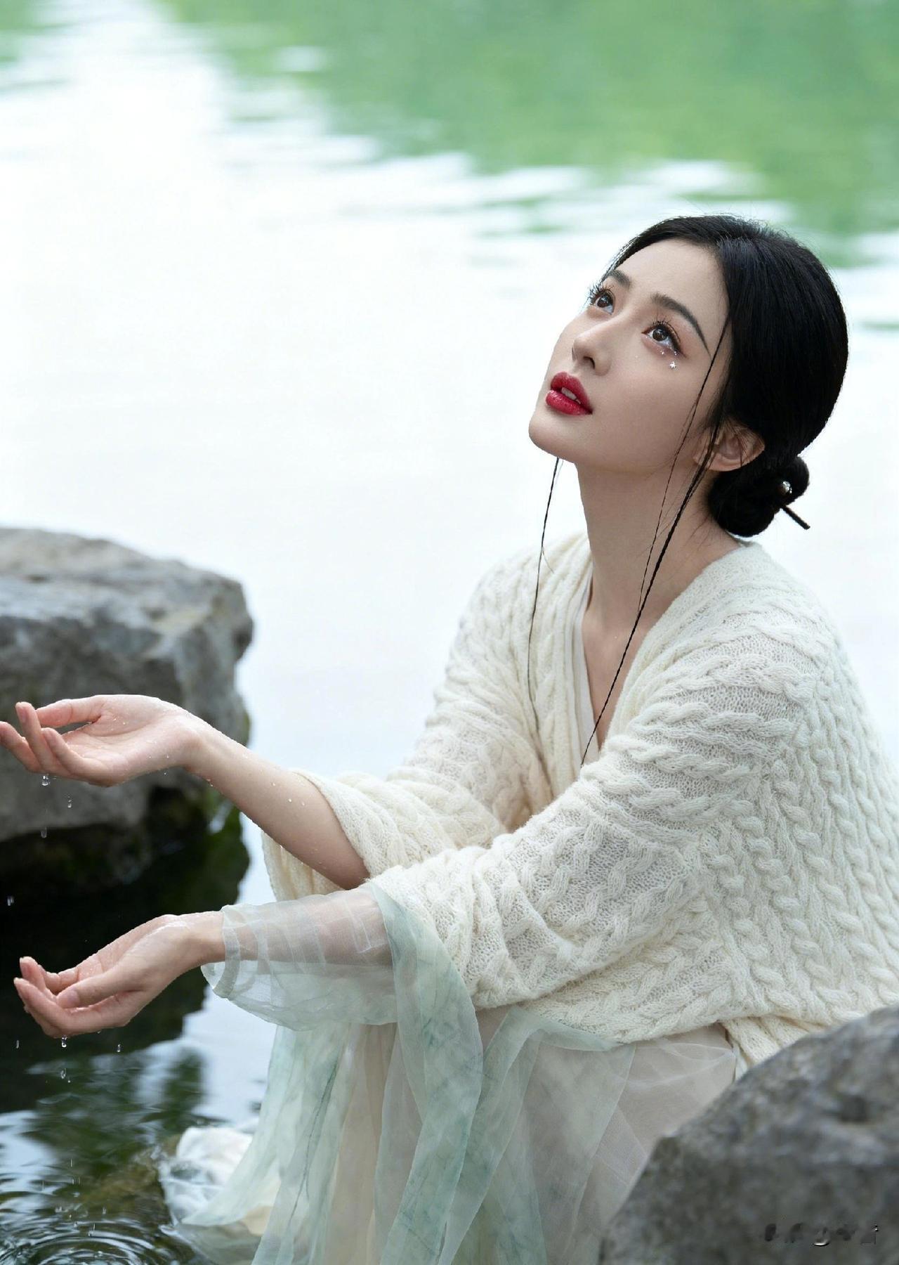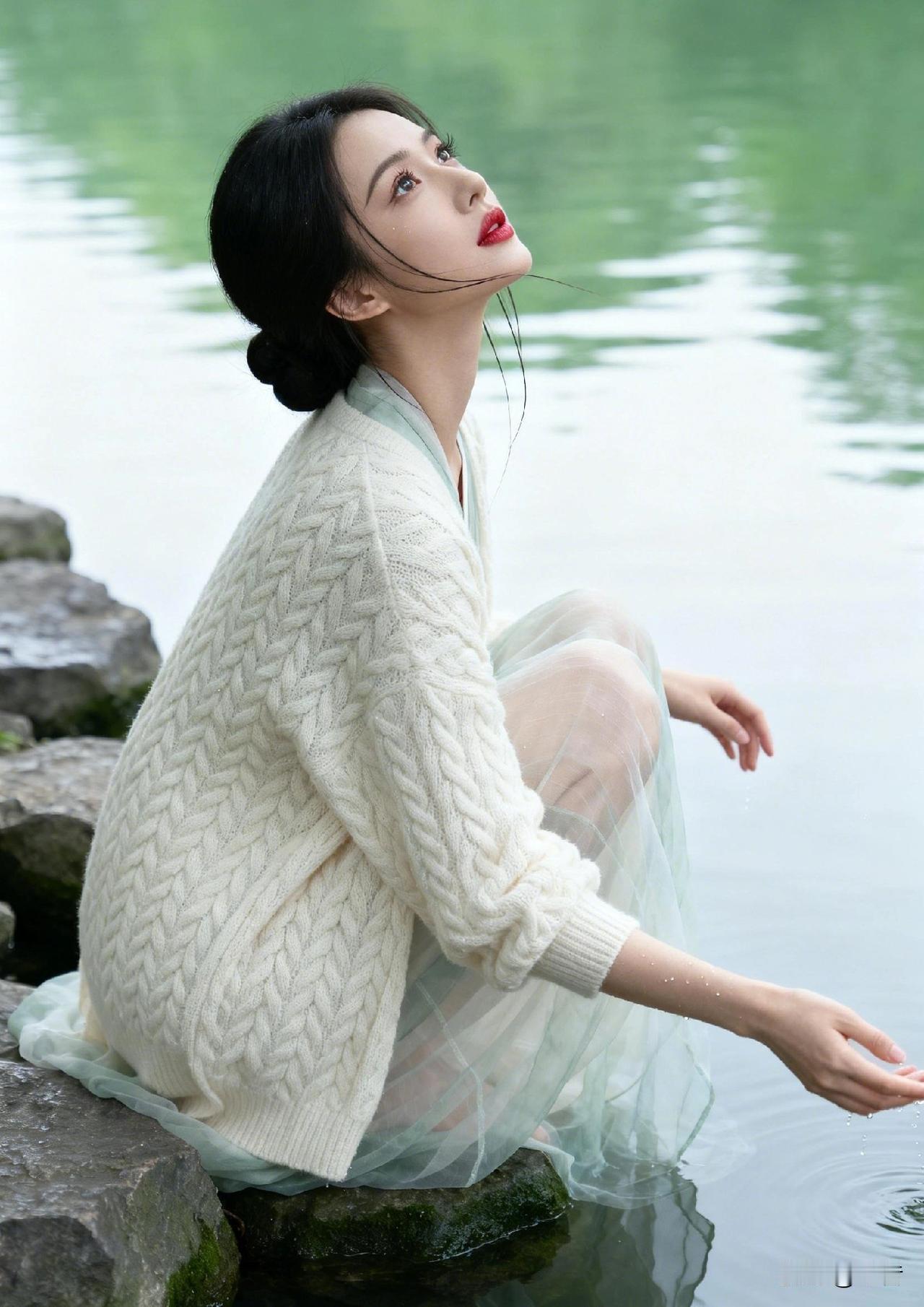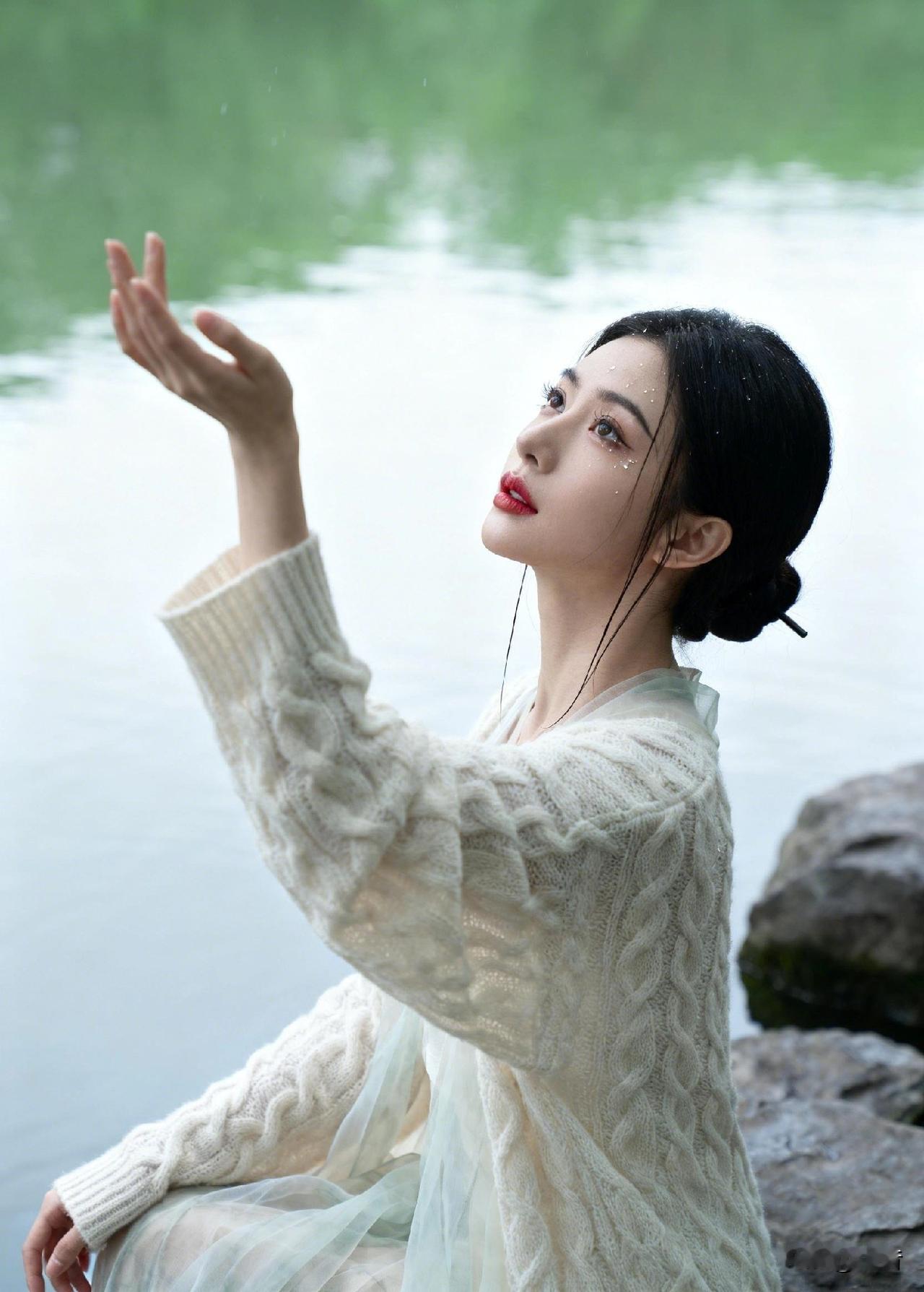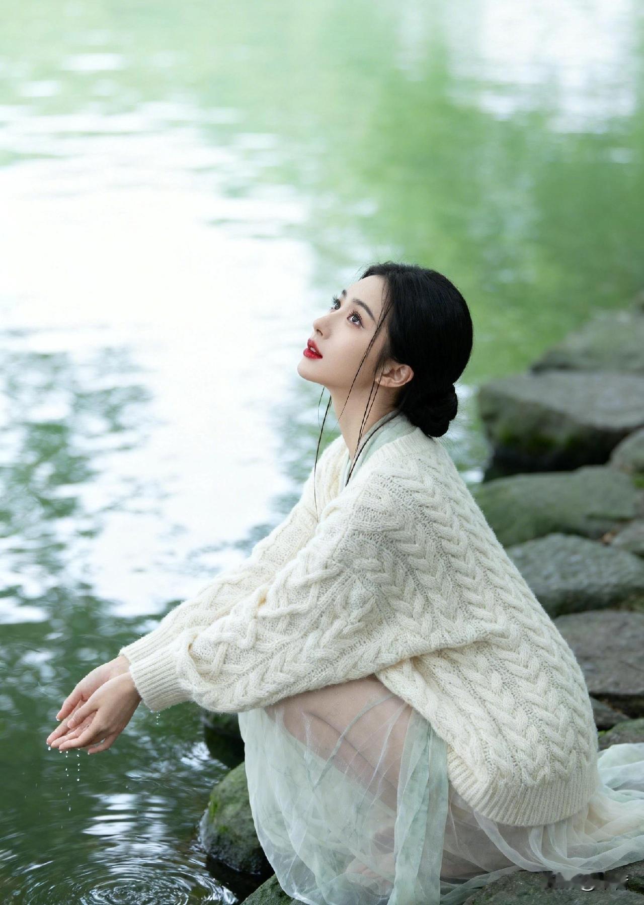 青石水畔 近景半身,眉目如星 动静之间,尽是东方含蓄之美