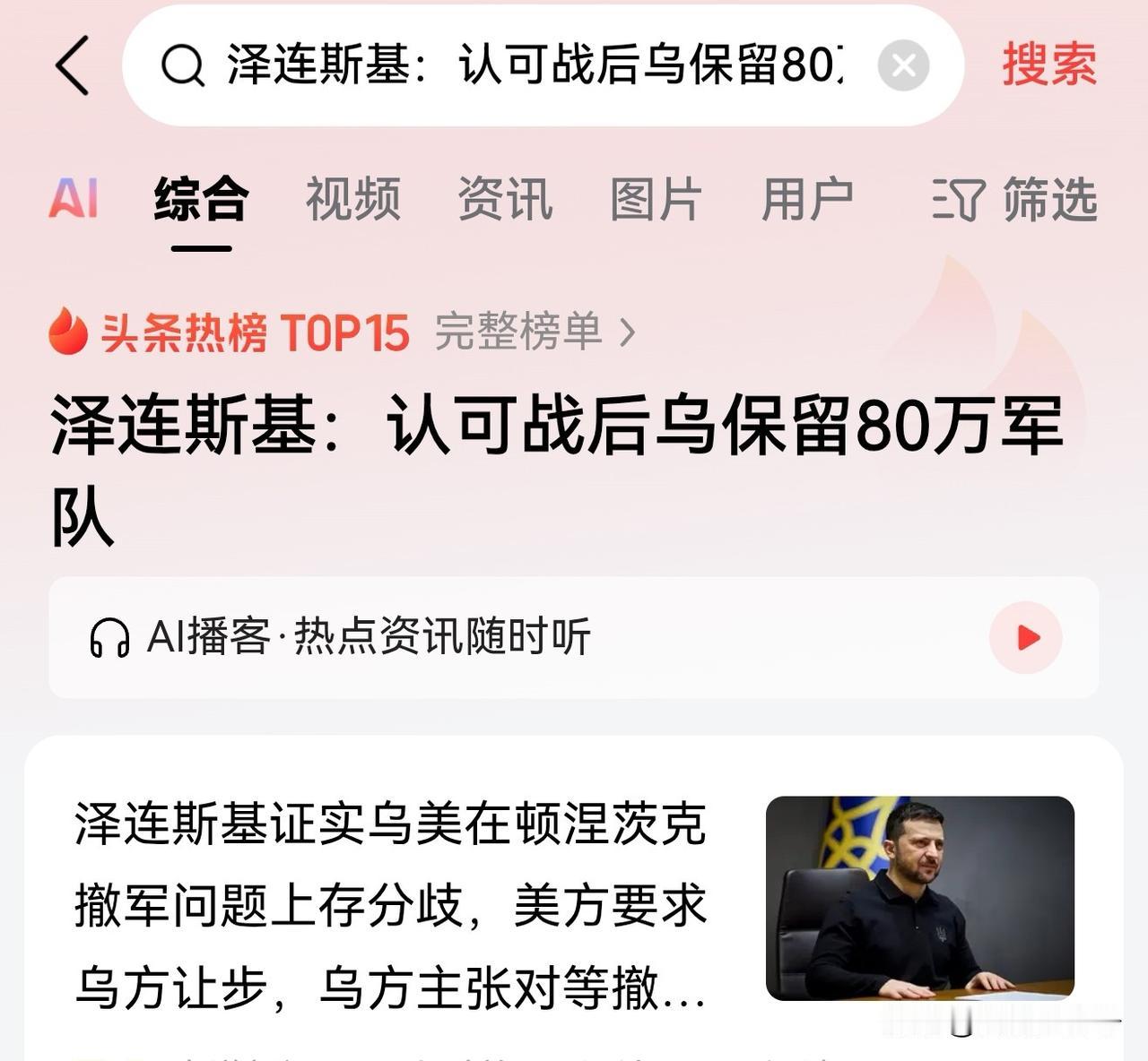 泽连斯基对外公布,欧美双方正在对新的和平协议进行讨论。 目前双方已经完成了战后乌克兰兵力的问题讨论。 美国允许乌克兰保留80万军队,这一数字得到了乌方与美方的共同认可。 但是领土方面的问题还是很难解决的。 分歧非常大。 泽连斯基表示,美国要求在顿涅茨克地区乌军必须从控制区撤军。 也就是说乌克兰现在控制的一些领土将变成自由经济区。 美国人不允许俄罗斯军队进入,也不允许乌克兰军队进入。 美方准备在这些地方打造一个非军事区。 但是泽连斯基反对这样的撤军计划。 泽连斯基表示要是这种非军事区划出来了你就不能单方面要求乌军撤出应该要求俄军同样对等撤出同样的土地。 这样才公平。 同时泽连斯基还是担忧俄军以平民的身份为掩护,渗透到这些自由经济区和非军事区里面并最终控制这些土地。 所以说土地问题是双方和谈的最关键的问题。 大家都不肯让步啊。