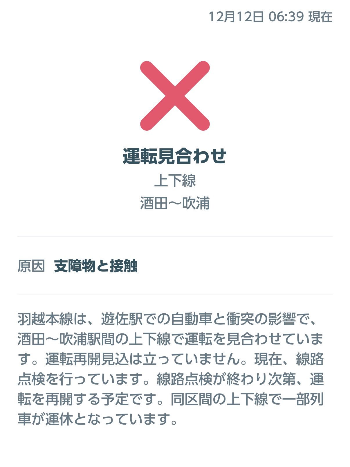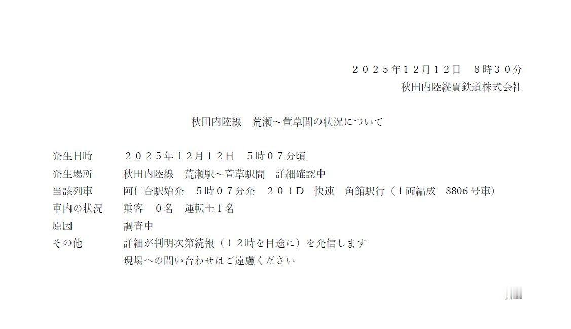 🔻事故还不只这一起。🔻由于汤座站发生与汽车相撞事故,上越本线酒田站至福浦站之