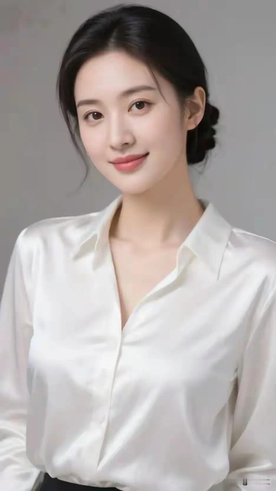 白缎衬衫,清冷氛围 直接拉满,出水芙蓉 天生丽质,冰肌玉骨 明眸皓齿,婀娜多姿 玉容如莲初绽放, 不染尘世半分埃。