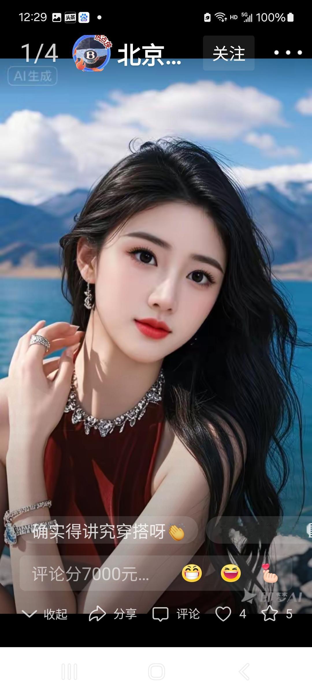 优雅红裙,珍珠闪耀,轻松惬意,享受美好时光。