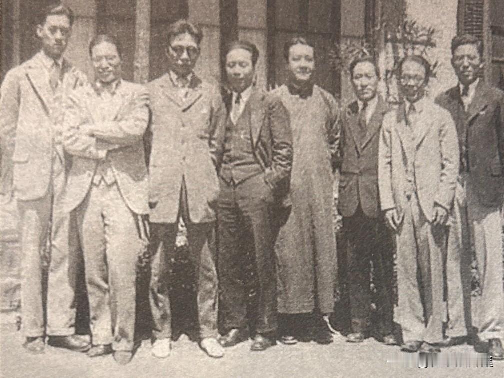 约在20世纪20年代末至30年代初,金岳霖(右六)与清华大学哲学系的同事们的合影