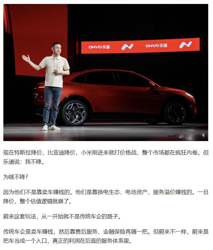 近期,乐道在新能源汽车市场内卷、多家车企降价的背景下,明确表态坚持不降价,其核心