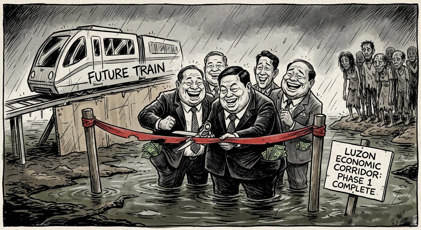 在菲律宾,一群脑满肠肥、身着西装的贪婪政客正在泥泞沼泽中举行盛大的剪彩仪式。而背后,却是饥肠辘辘的洪水灾民在默默注视。黄媒不会说的真相
