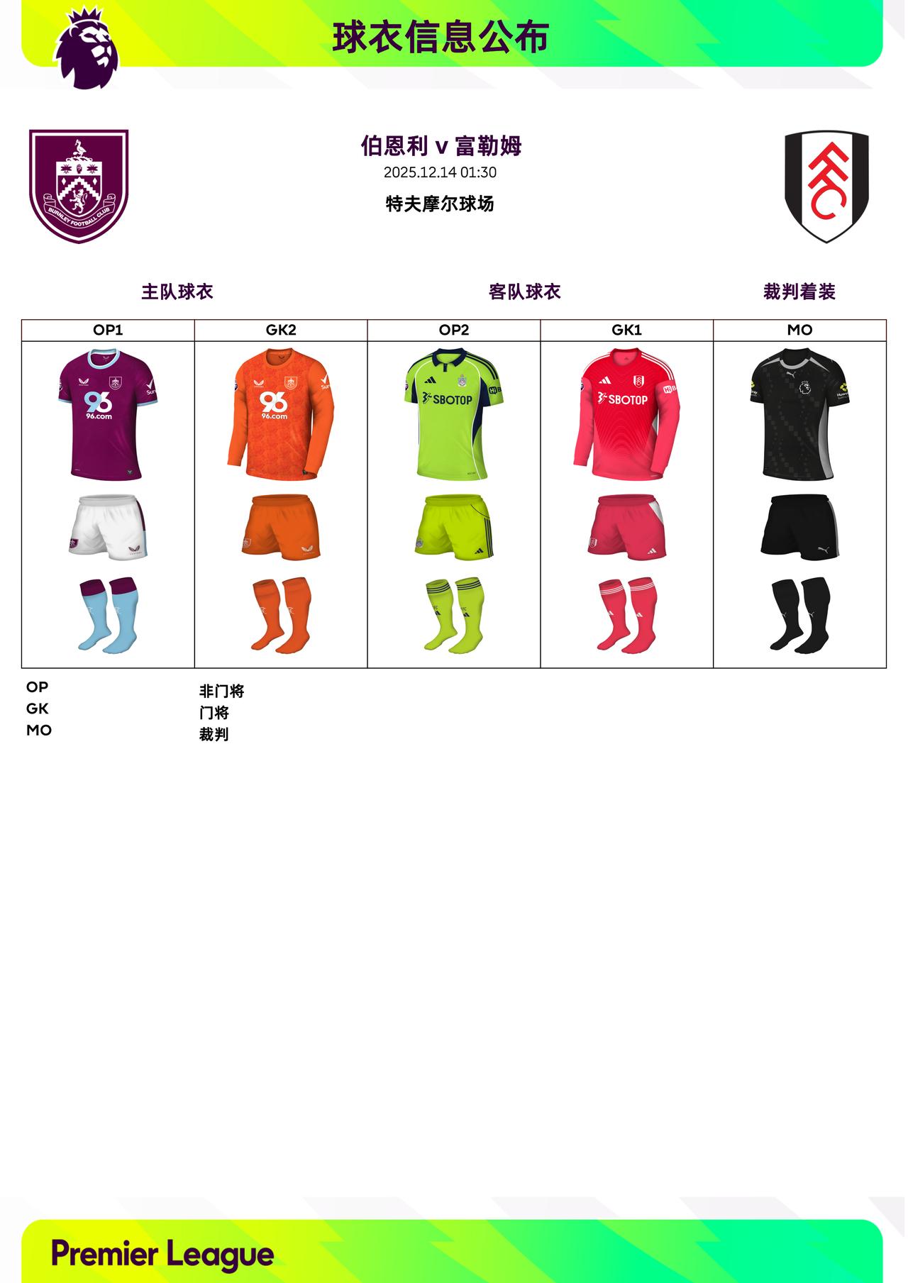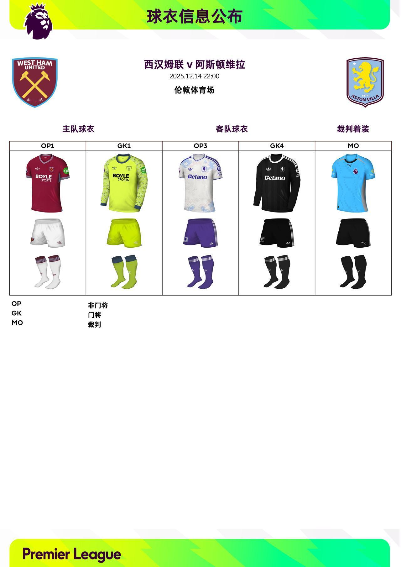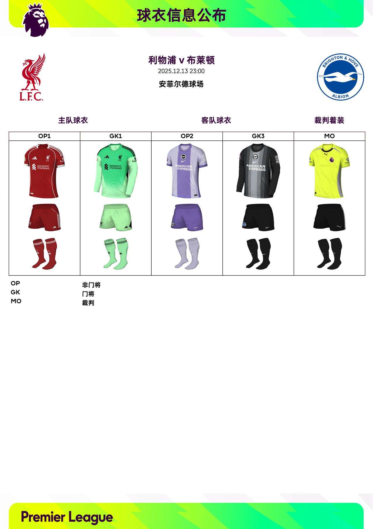 2025/26赛季英超联赛第16轮球衣信息: ◉ 焦点战——水晶宫 V 曼城 ,蓝月军团身穿银灰色第二客场球衣