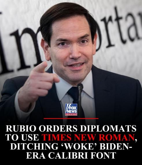 美国国务院刚出的一件挺有意思的事——他们给全国,不,是给全世界的外交官下了个命令:以后所有官方文件,不许再用Calibri这种字体了,统统改回用Times New Roman。 这事儿听起来是不是有点……过于细节了?没错,就是关于字体的。 但你稍微琢磨一下,就会发现这背后远不止是“Arial还是宋体”那么简单,它更像是一面镜子,照出了美国国内一些挺激烈的争斗。 事情是这样的。就在前几天,美国国务卿马可·卢比奥发了一道内部指令。 他要求所有外交官,在处理官方通讯时,立刻停止使用Calibri字体,全面改回使用Times New Roman字体。这个决定,从2025年12月10日(周三)起就正式生效了。 那为什么要改呢?理由听起来很正经:为了“恢复国务院文书工作的得体与专业性”。 这事儿看着是改个字体那么简单,实际上藏着美国两党之间、保守派和自由派之间实实在在的较量,每一个字背后都是政治立场的较劲。 先得说下令改字体的这位美国国务卿鲁比奥,他可不是一般人,是共和党里典型的保守派,还是把共和党往更右翼拉的茶党运动的头头,2025年特朗普开启第二任期后,他当上了国务卿,手里还兼着好几个重要职位,一直在推动特朗普那套“美国优先”的政策,之前刚搞过国务院大重组,裁了15%的员工,撤了上百个办事机构,就是想把国务院改成符合保守派理念的样子,这次改字体不过是他一系列动作里的一个。 再说说这两种字体的来头,现在要停用的Calibri字体是2023年1月时任国务卿布林肯推行的,布林肯是民主党拜登政府时期的官员,当时推这个字体说是因为它线条简单,没有多余的棱角,对视力不太好的人更友好,而且作为微软的默认字体用起来方便。 但在鲁比奥这些保守派看来,这根本不是方便不方便的事,他们直接说Calibri“不够正式”,还把推这个字体的行为归为DEI项目的一部分,说这是“浪费资源”,非要给叫停。 这个DEI项目就是“多元化、公平和包容”的政策,2020年拜登政府时期一直在大力推广,想着照顾到不同群体的需求,比如残障人士、少数族裔这些,但特朗普和共和党打一开始就强烈反对,说这政策其实是歧视白人男性,还破坏了凭本事吃饭的规矩,等2025年特朗普重新上台,立马就开始在联邦层面废除这些DEI项目,不光要解雇负责多元化事务的官员,连专项拨款都给撤了,这次改字体就是他们削弱多元化政策的最新一步,借着换字体的由头,进一步推翻前民主党政府的政策痕迹。 而要恢复的Times New Roman字体,那可是美国官方用了几十年的老字体,属于那种带衬线的传统字体,看着就庄重、正式,在保守派眼里,这字体才配得上国务院的“得体与专业性”,能体现出美国外交的“统一声音”。 这种对细节的较劲,本质上是两边在争夺对“美国形象”的定义权,保守派想塑造一个传统、强硬的美国形象,自由派则想展现一个多元、开放的美国形象,连字体这种不起眼的地方都成了战场。 更关键的是,这事儿不是孤立的,而是美国两党斗争白热化的一个缩影。 这些年美国两党闹得越来越凶,从政府预算、医保政策到外交方向,几乎没有能达成共识的地方,之前还出现过持续43天的联邦政府停摆,就是因为两党在医保福利支出上吵得不可开交,最后就算达成妥协,核心分歧也没解决,没过多久又可能面临停摆危机。 现在这种斗争已经渗透到了各种细节里,连官方文件用什么字体都能吵起来,本质上是想通过控制这些细节来巩固自己的政治阵地。 还有个点得说清楚,鲁比奥他们嘴上说改字体是为了“专业性”,但其实根本没考虑实际需求,有数据显示Calibri这类无衬线字体确实对视力障碍人士更友好,能帮他们更清楚地阅读文件,可鲁比奥不管这些,为了推行自己的政治主张,直接就把这个便利给取消了。 这也能看出来,他们关心的根本不是字体本身好不好用,而是能不能通过这件事达到政治目的——一方面推翻前政府的政策,另一方面强化保守派的统治力。 所以说,改个字体看似是小事,实则是保守派通过把控细节来推行政治理念、清除异己痕迹的手段,是两党在多元化政策、政府理念、美国形象定义等诸多问题上激烈斗争的体现,每一个字的背后,都是实实在在的政治博弈。