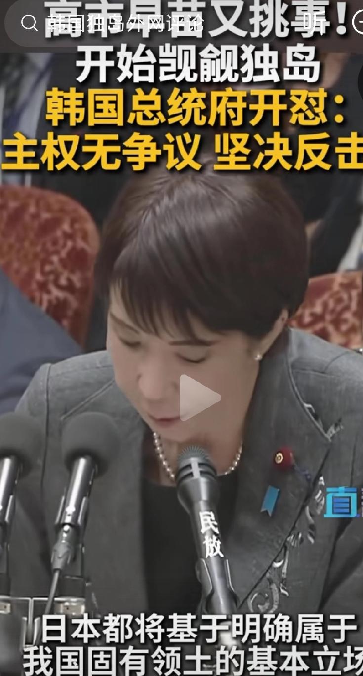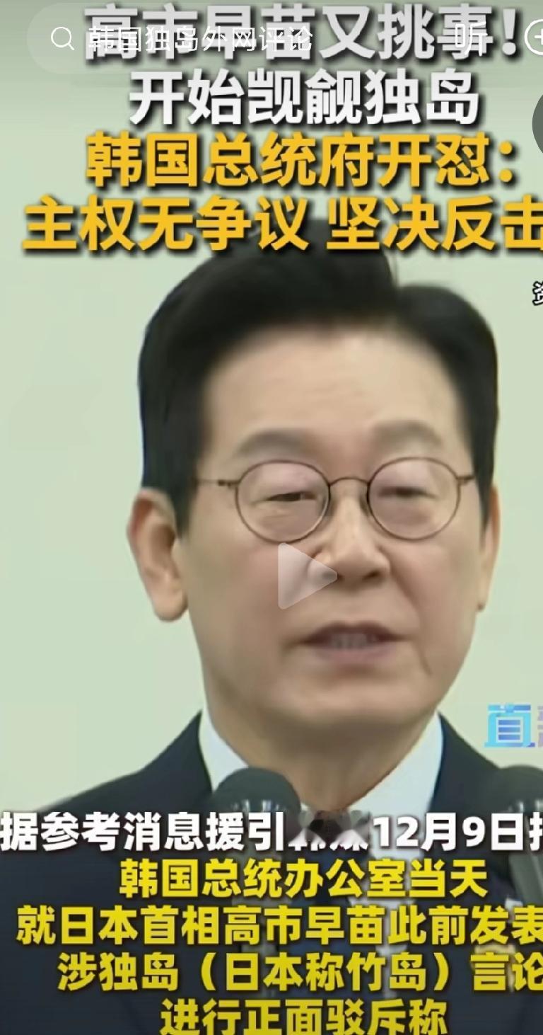 据新华社12月9日援引韩联社报道,韩国总统府9日对日本首相高市早苗涉韩日领土争议相关发言进行反驳,表示“独岛(日本称‘竹岛’)在历史、地理、国际法上都明确是韩国的固有领土。”谁都不会否认,美日韩他们在一起组建的团伙形式很多,多是一致对外,为团伙争取各方面的利益最大化;或是相互促进团伙内部经济发展。可是涉及到本国切身利益时,又不得不口枪舌战,甚至枪炮相对。(个人观点,不喜勿喷,谢谢!)
