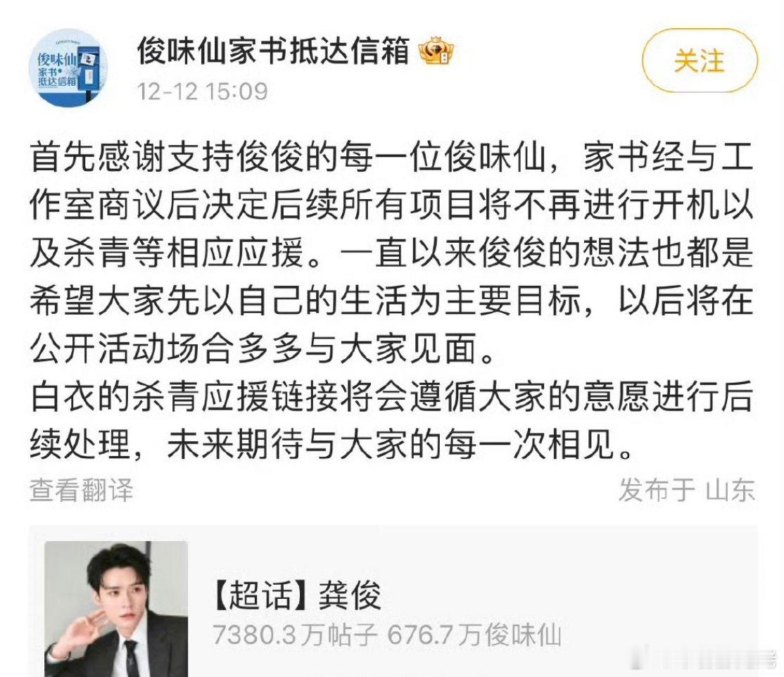 龚俊取消各种杀青开机应援。很好很好,还有人不知道这些所谓应援就是给那些粉丝赚钱吗?正经演员不需要这些满足虚荣心啊,俊俊很棒!
