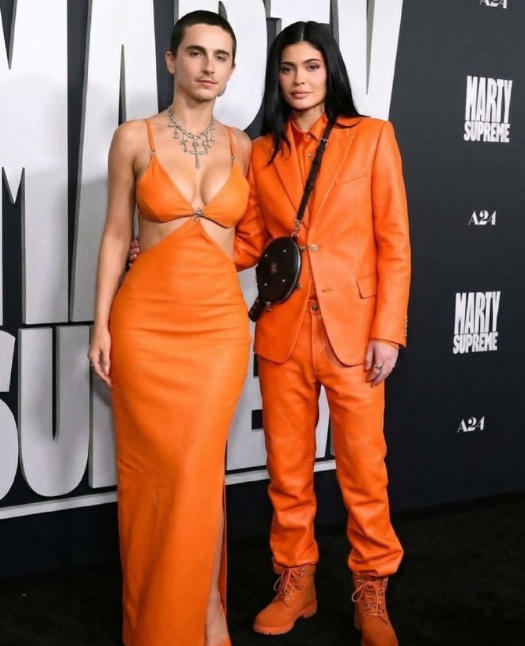 甜茶金小妹合照被恶搞 此前,甜茶Timothée Chalamet 和女友金小妹 Kylie Jenner出席《至尊马蒂》洛杉矶首映礼的一身橙色系情侣装在外网爆火,网友还帮他们做了恶搞版合照哈哈哈哈哈