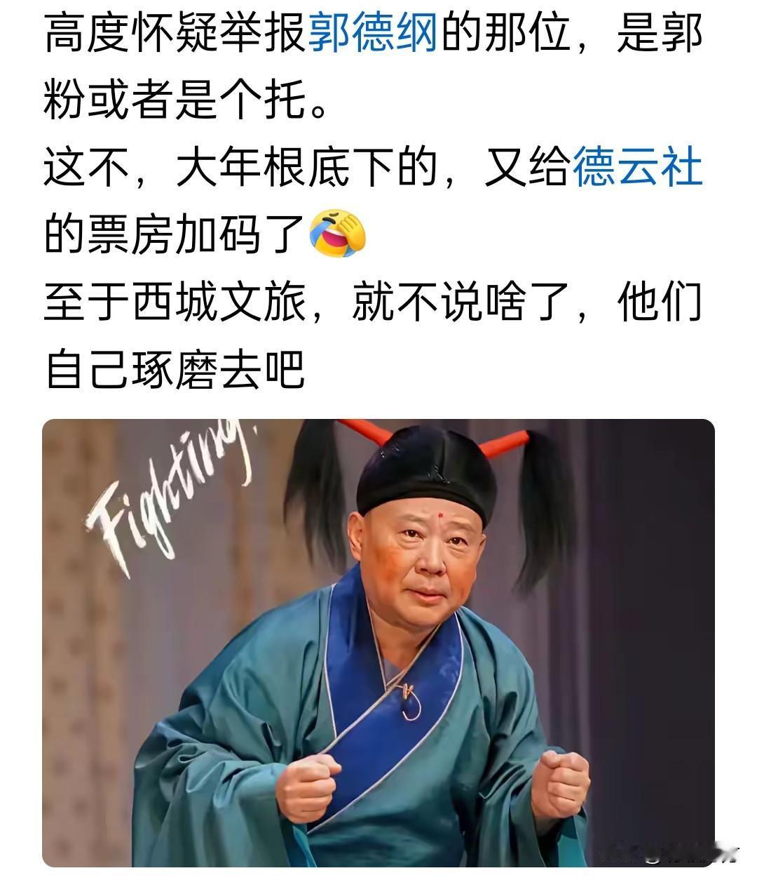 在这个世界上,我最看不懂的就是饭圈儿了。偶像能圈粉自然是有些过人之处,但肯定也不会是处处无可挑剔,作为产品或服务的消费者,你花了钱或时间,享受了艺人提供的精神愉悦,这在交际上已经两清了,何至于给自己请回一尊神,时时刻意维护,容不得他人的一点儿指摘?《大话西游》中紫霞中看着至尊宝落荒而逃一脸淘醉,说“跑都跑得那么帅”,可见情人眼里出西施,粉丝眼里出偶像。[笑哭]创作训练营2期开营啦 比如这次郭德纲的节目被人举报,有人说是眼红,有人说是挟私报复,有人说该取缔西城文旅,但是老郭节目里的“伦理哏荤段子”你们是真看不到么? 客观来讲,郭德纲是很有些艺术天份的,比如说、唱,比如学戏,观众喜欢也在情理之中,但是也不需要无条件支持,充斥着“屎尿屁”的相声未必就是“接地气”,也肯定不是艺术。