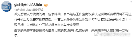龚俊粉丝将不再进行开机等应援龚俊粉丝取消开机杀青等相应应援拒绝无效应援!龚俊粉丝取消开机等活动,减少非必要消耗,让追星回归理性与快乐。